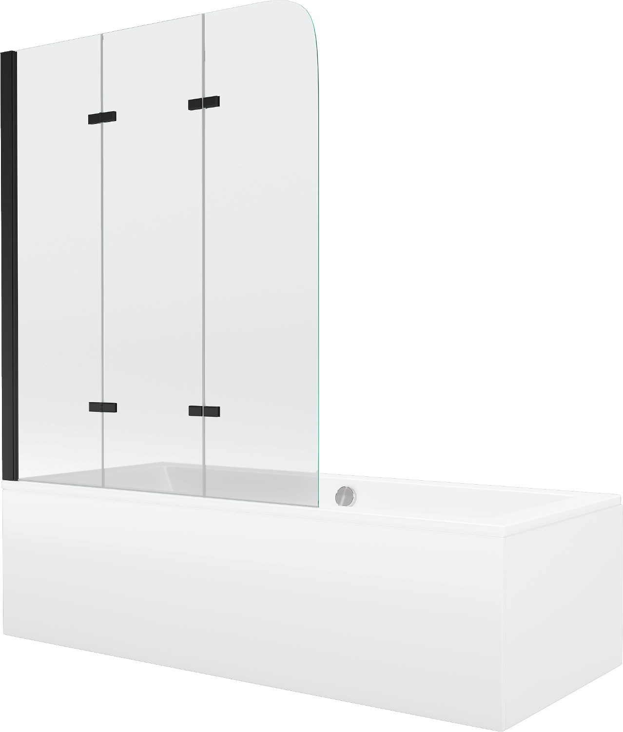 Parawan wykonany z trzech skrzydeł z możliwością złożenia. Takie rozwiązanie pozwala zaoszczędzić więcej miejsca w łazience i umożliwia swobodne korzystanie z pozostałej przestrzeni, gdy nie korzystamy ze strefy kąpielowej.