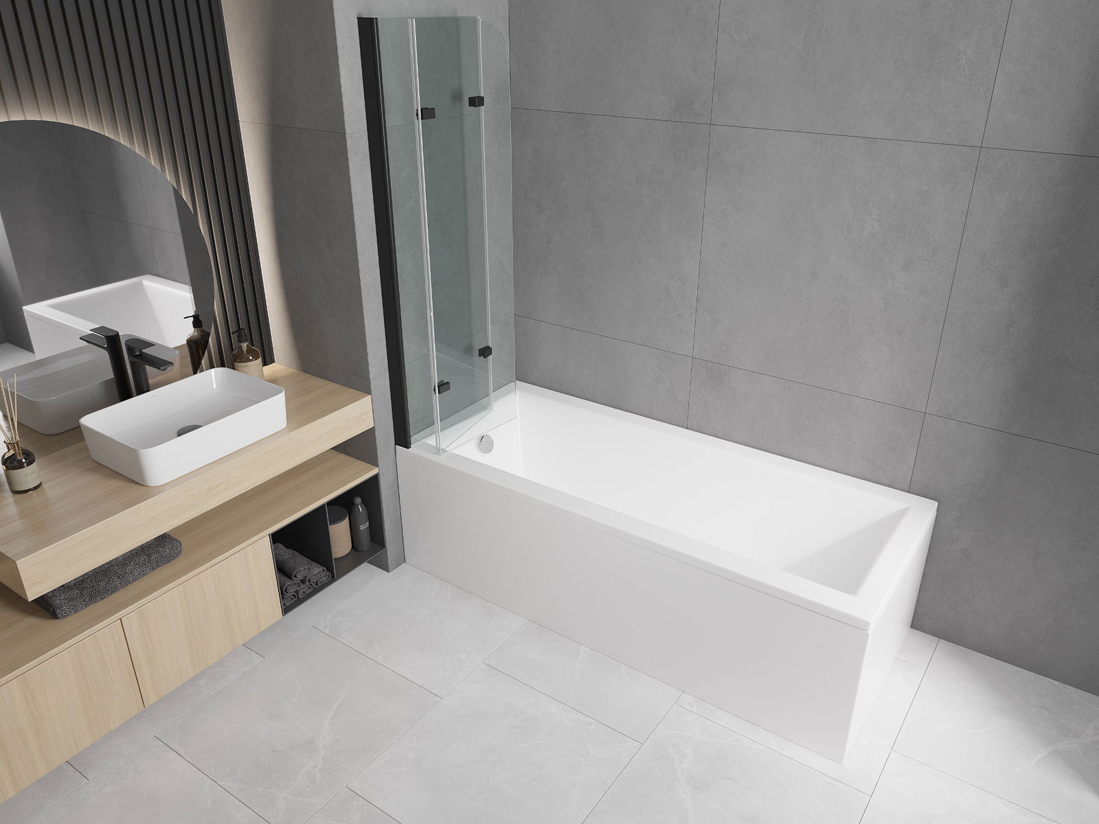 Parawan wykonany z trzech skrzydeł z możliwością złożenia. Takie rozwiązanie pozwala zaoszczędzić więcej miejsca w łazience i umożliwia swobodne korzystanie z pozostałej przestrzeni, gdy nie korzystamy ze strefy kąpielowej.