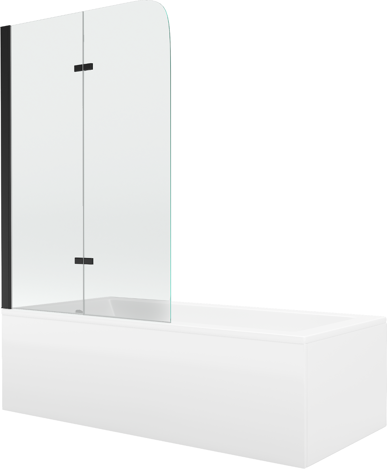 Mexen Cubik wanna prostokątna 170 x 70 cm z obudową i parawanem 2-skrzydłowym 80 cm, transparent, czarny - 550317070X9008027000