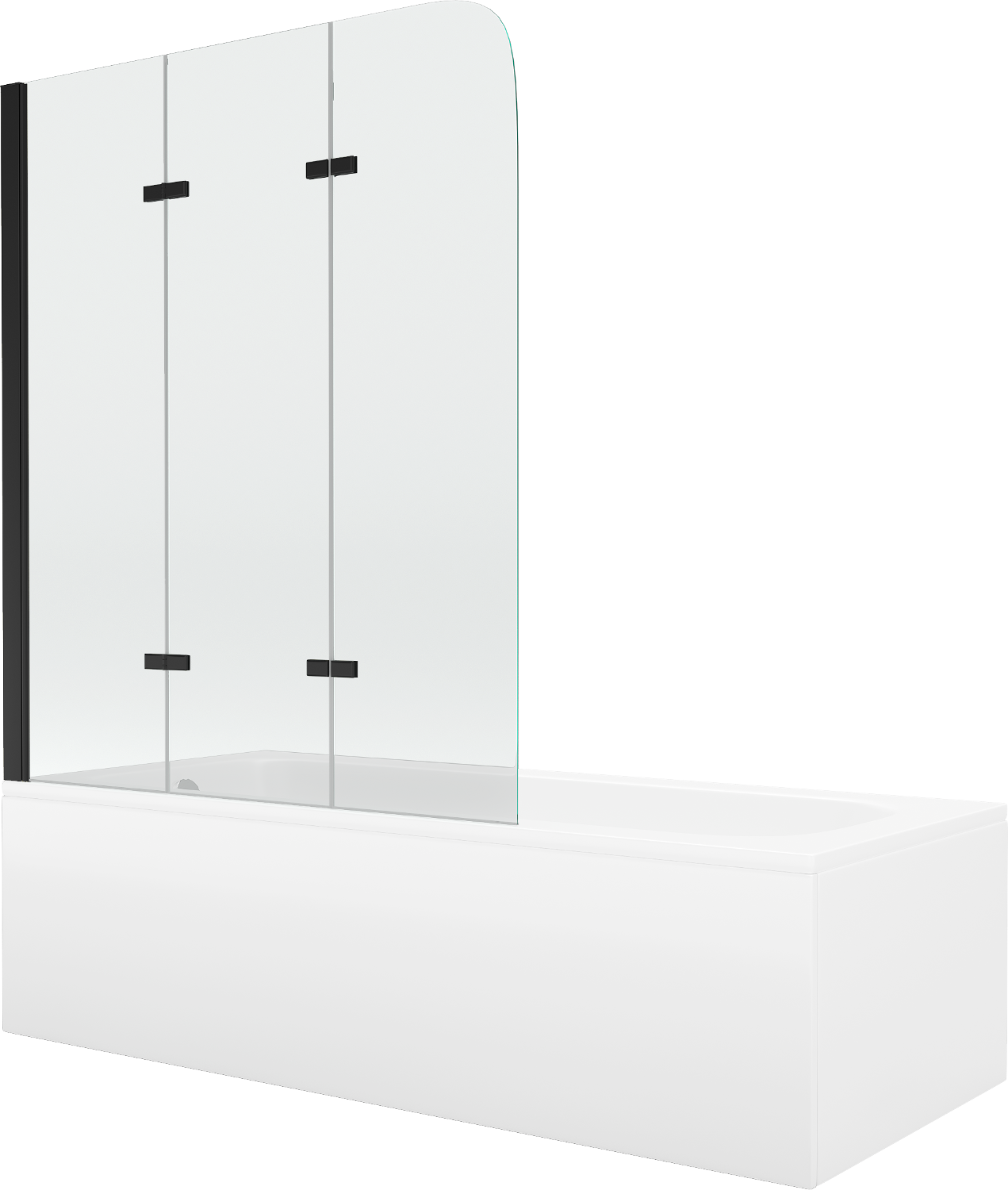 Mexen Vega wanna prostokątna 150 x 70 cm z obudową i parawanem 3-skrzydłowym 120 cm, transparent, czarny - 550115070X9012037000