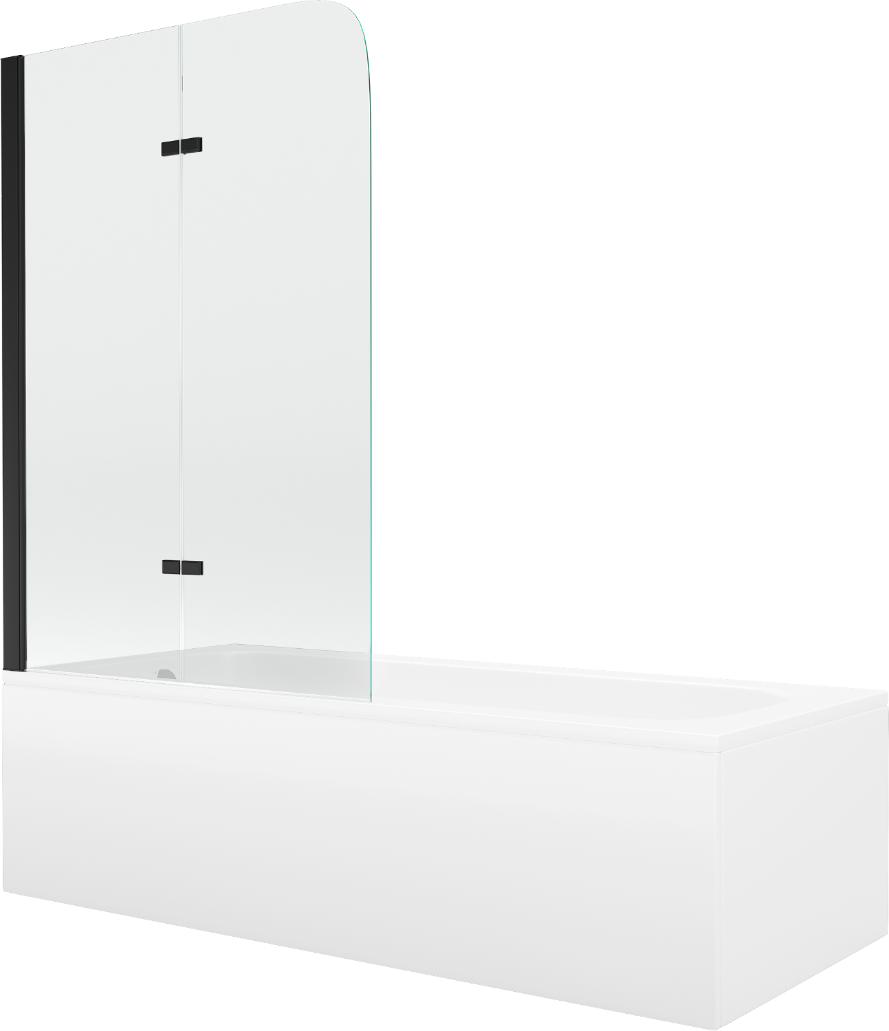Mexen Vega wanna prostokątna 160 x 70 cm z obudową i parawanem 2-skrzydłowym 100 cm, transparent, czarny - 550116070X9010027000