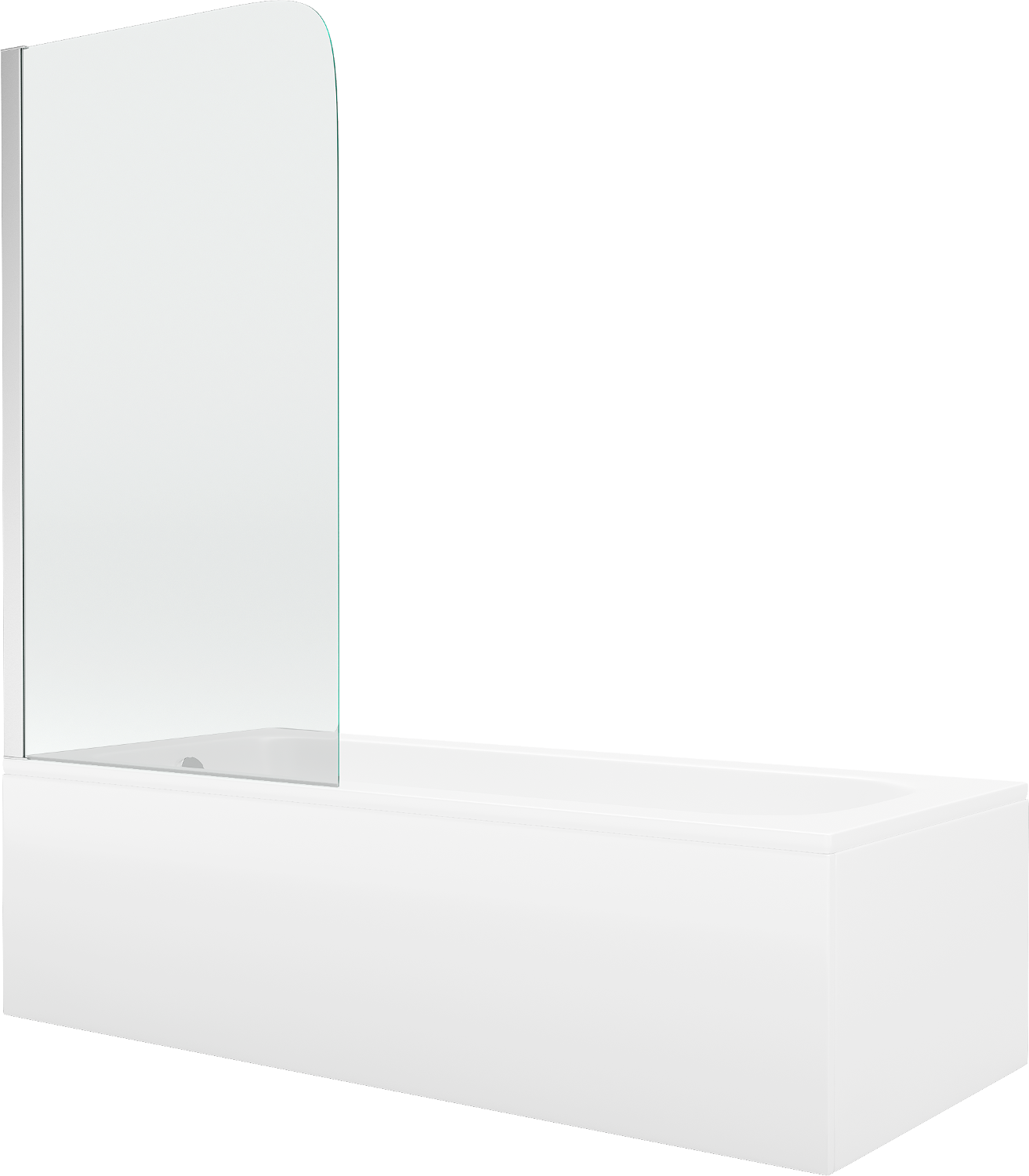 Mexen Vega wanna prostokątna 170 x 70 cm z obudową i parawanem 1-skrzydłowym 80 cm, transparent, chrom - 550117070X9008010100