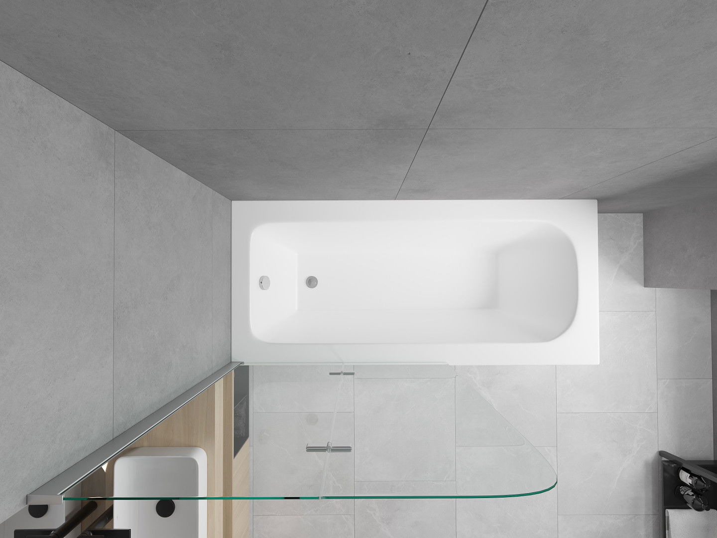 Parawan wykonany z dwóch skrzydeł z możliwością złożenia. Takie rozwiązanie pozwala zaoszczędzić więcej miejsca w łazience i umożliwia swobodne korzystanie z pozostałej przestrzeni, gdy nie korzystamy ze strefy kąpielowej.