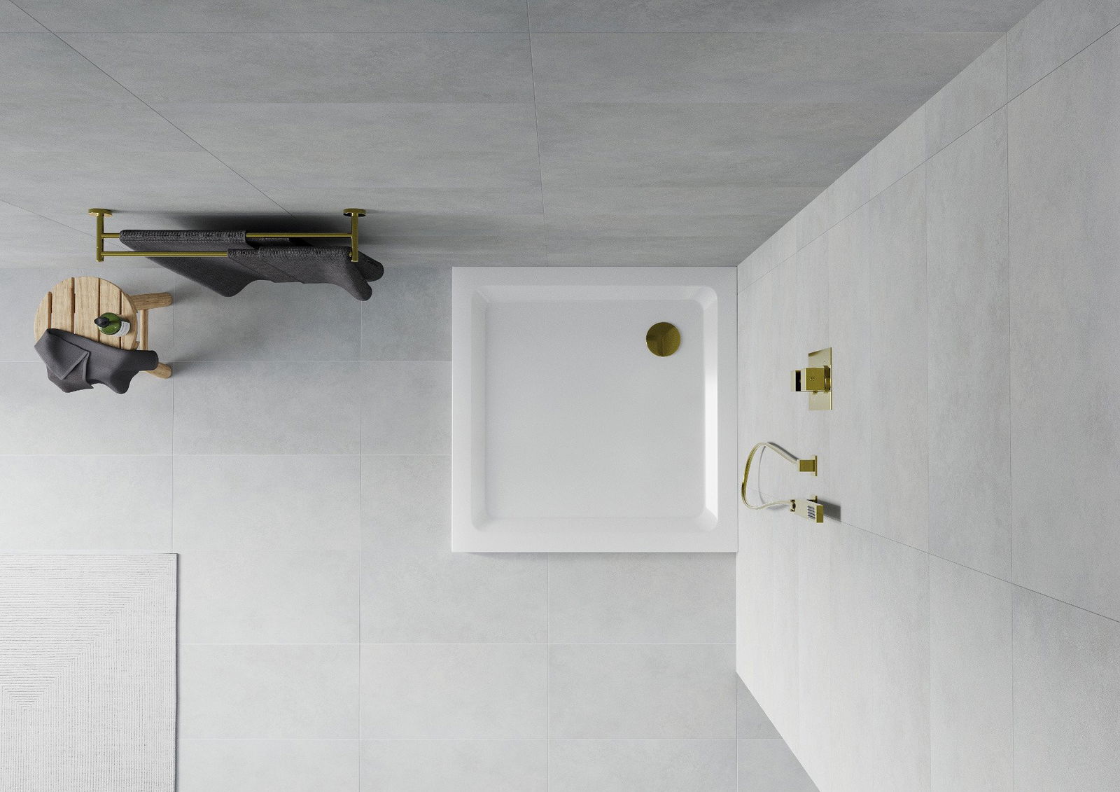 Mexen Flat brodzik kwadratowy slim 80 x 80 cm, biały, syfon złoty - 40108080G