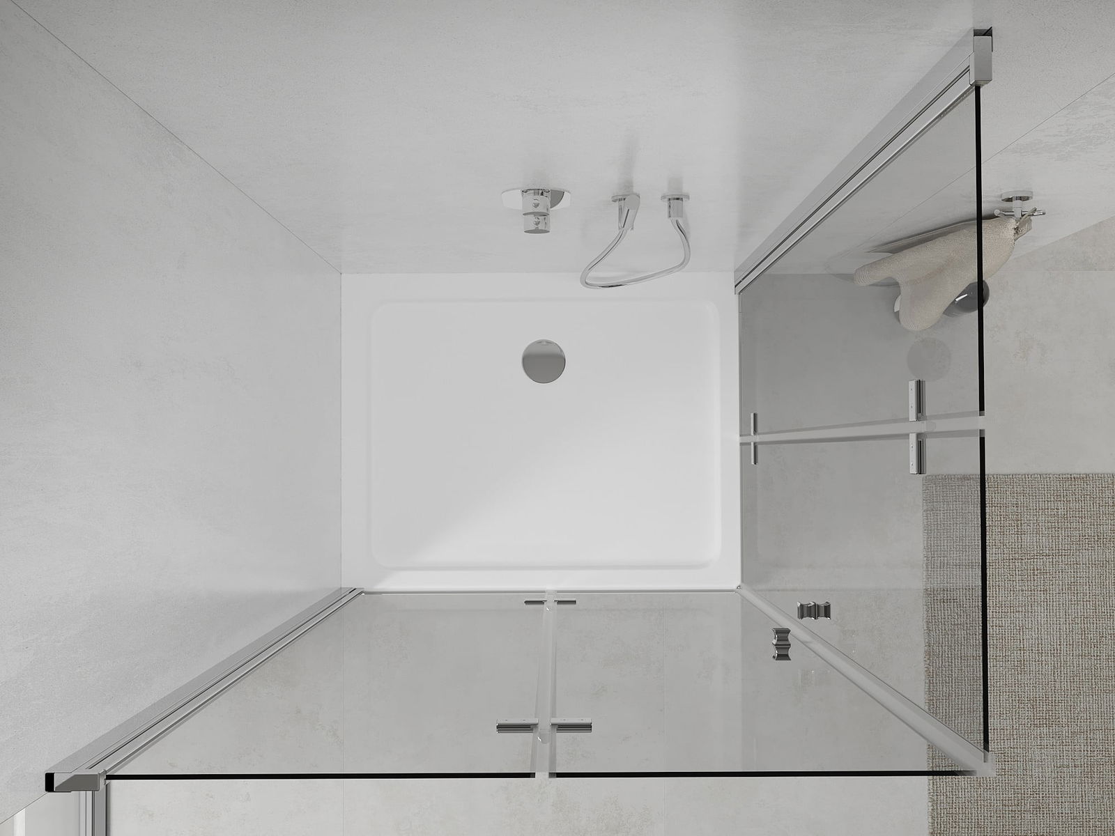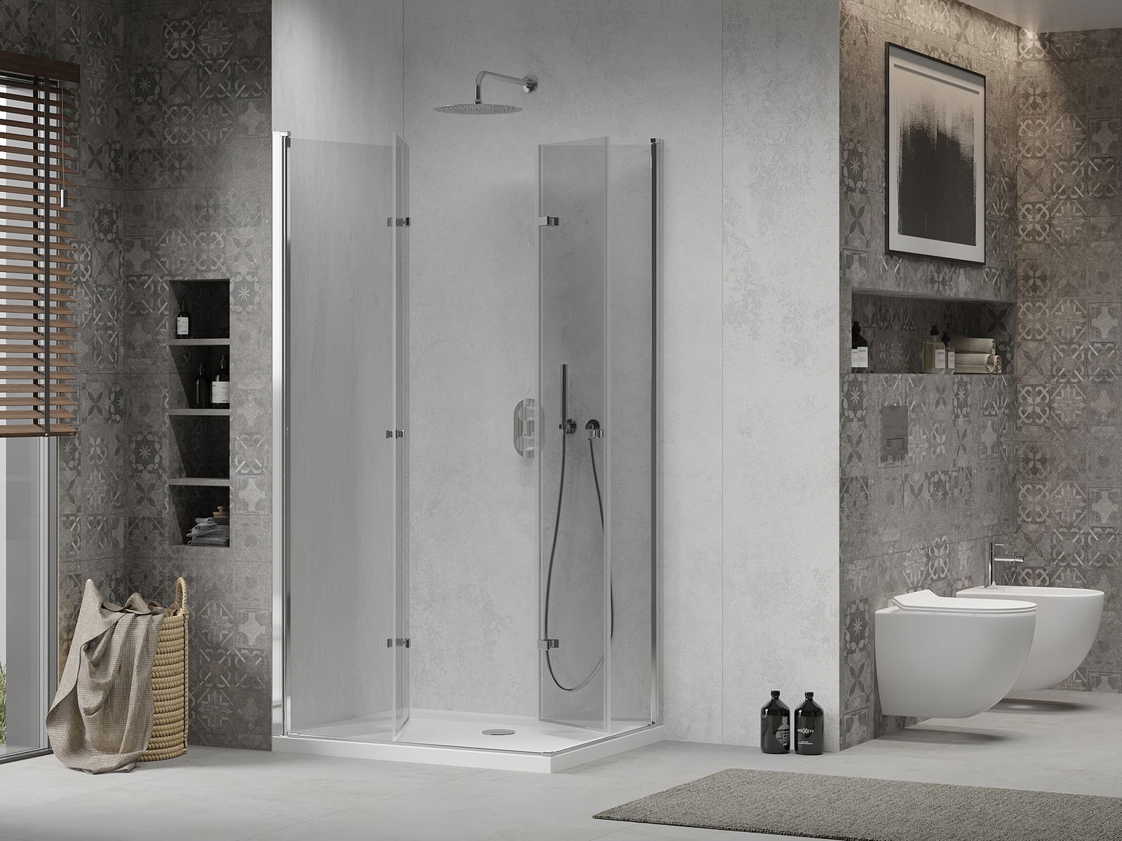 Możliwość składania drzwi, zarówno do zewnątrz, jak i do wewnątrz, pozwala uzyskać więcej przestrzeni podczas niekorzystania z prysznica. Jest to idealne rozwiązanie do mniejszych łazienek, maksymalnie wykorzystujące dostępną powierzchnię.