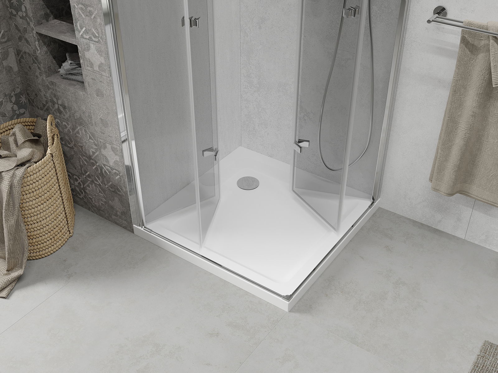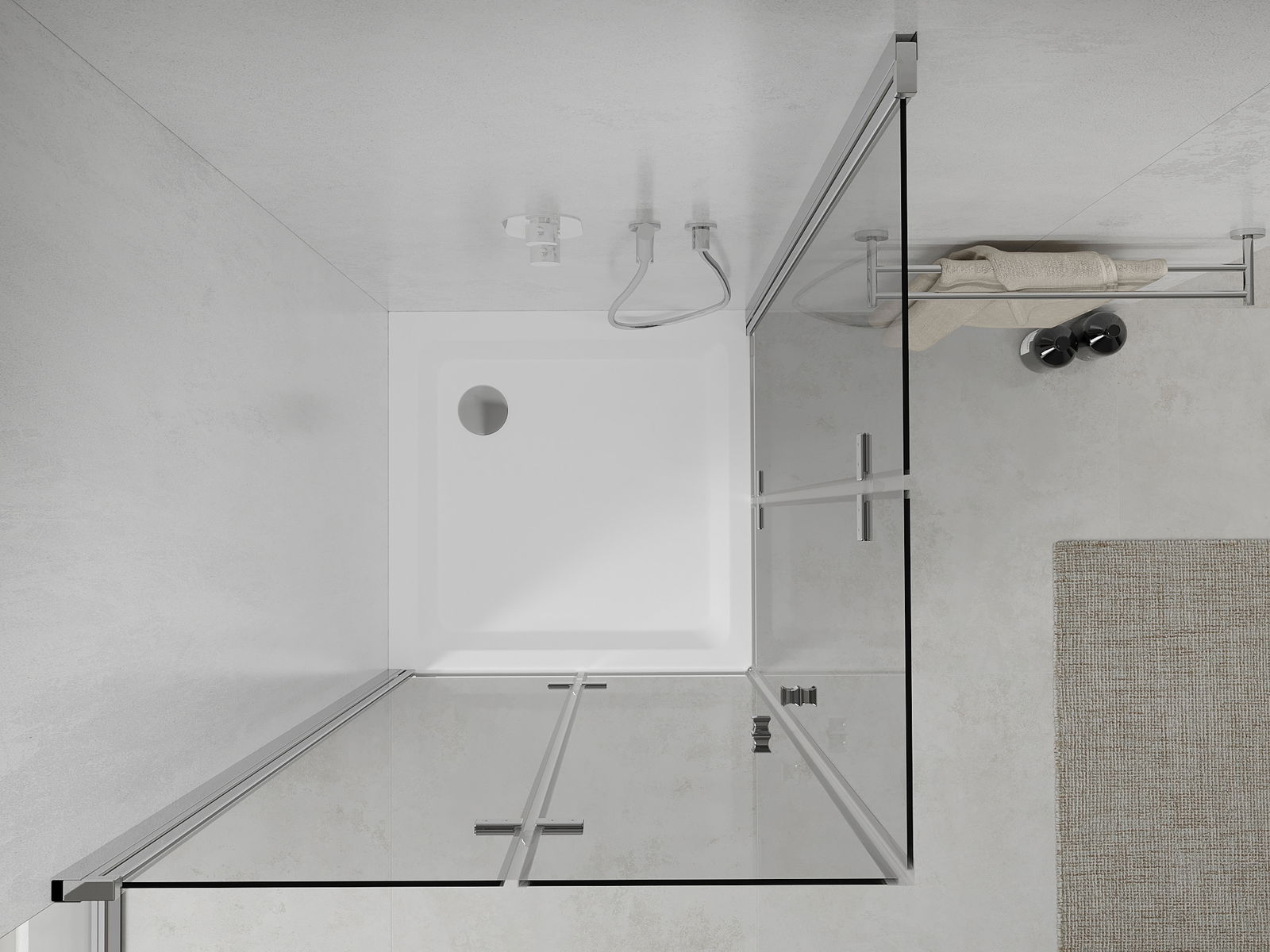 Możliwość składania drzwi, zarówno do zewnątrz, jak i do wewnątrz, pozwala uzyskać więcej przestrzeni podczas niekorzystania z prysznica. Jest to idealne rozwiązanie do mniejszych łazienek, maksymalnie wykorzystujące dostępną powierzchnię.