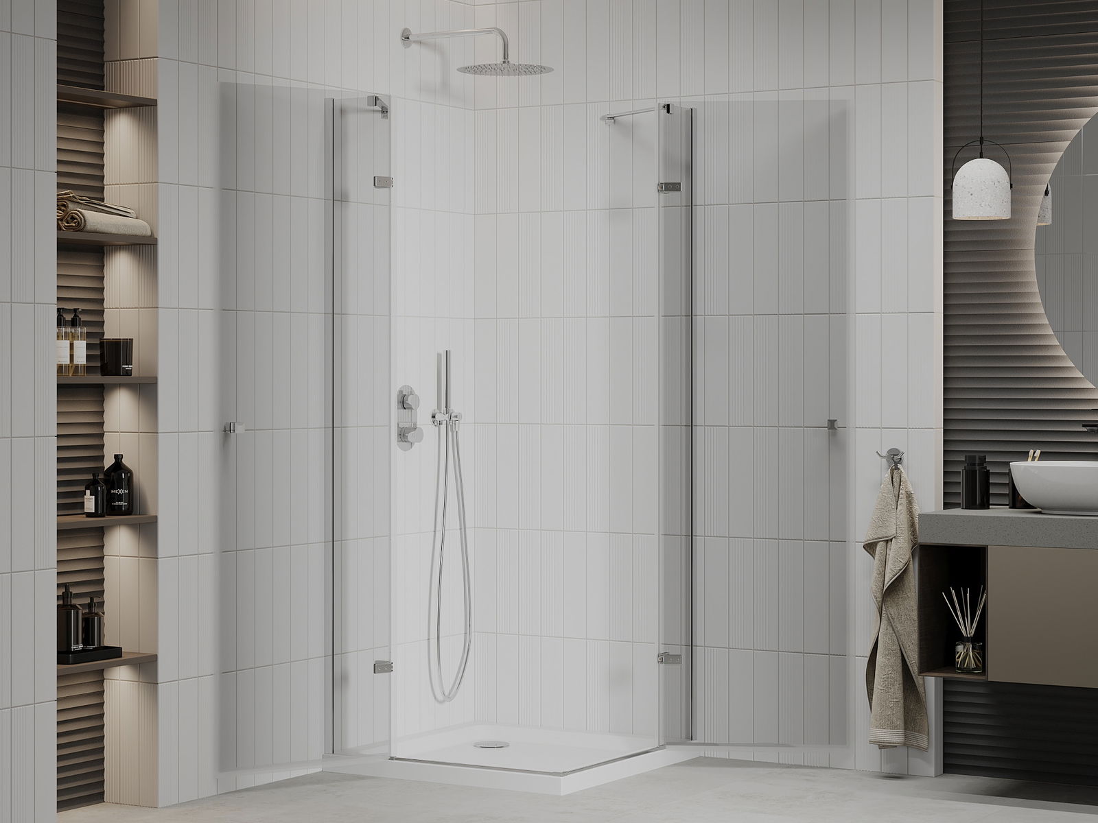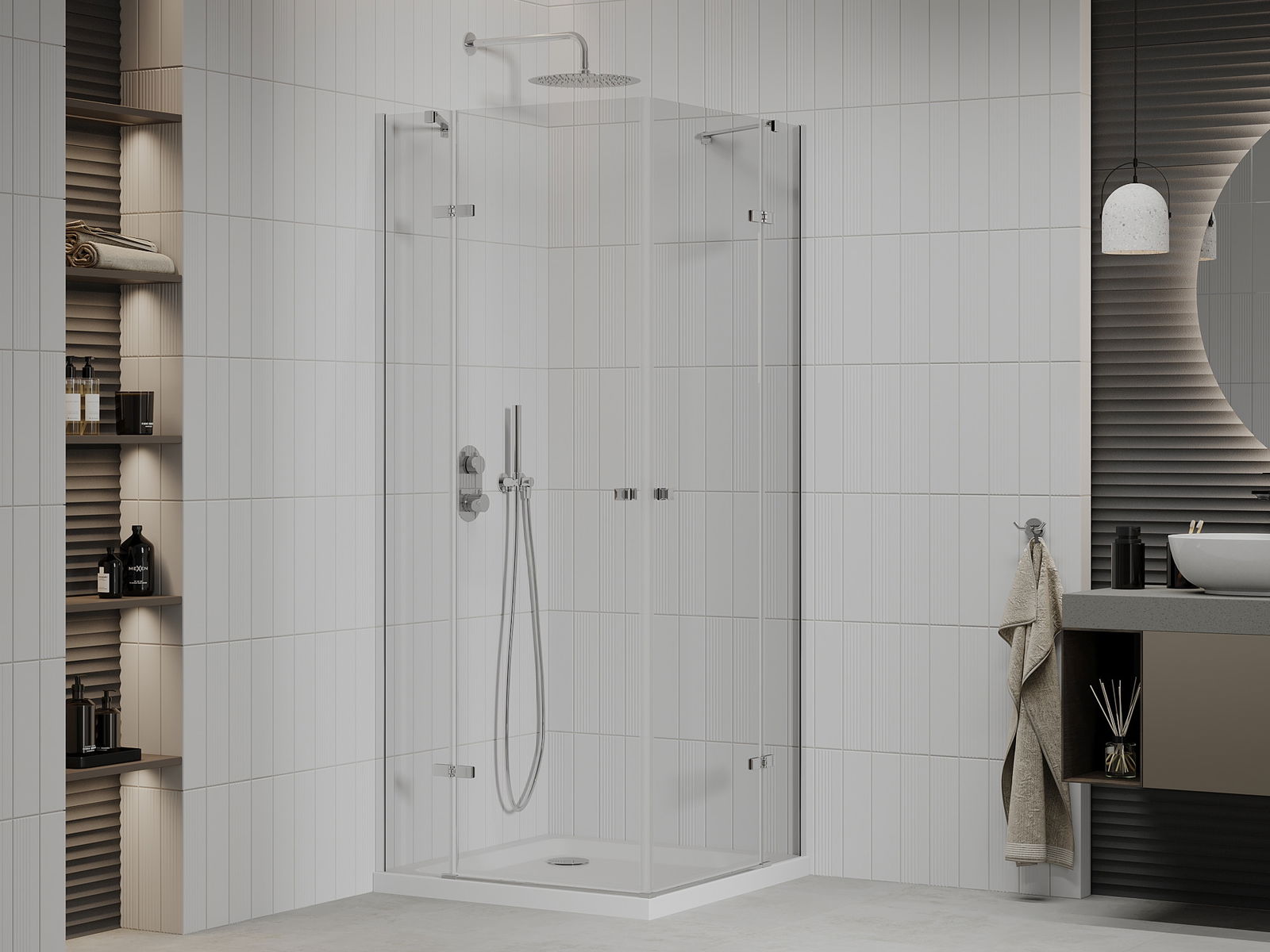 Mexen Roma Duo kabina prysznicowa uchylna 70 x 70 cm, transparent, chrom + brodzik Flat - 854-070-070-01-02-4010