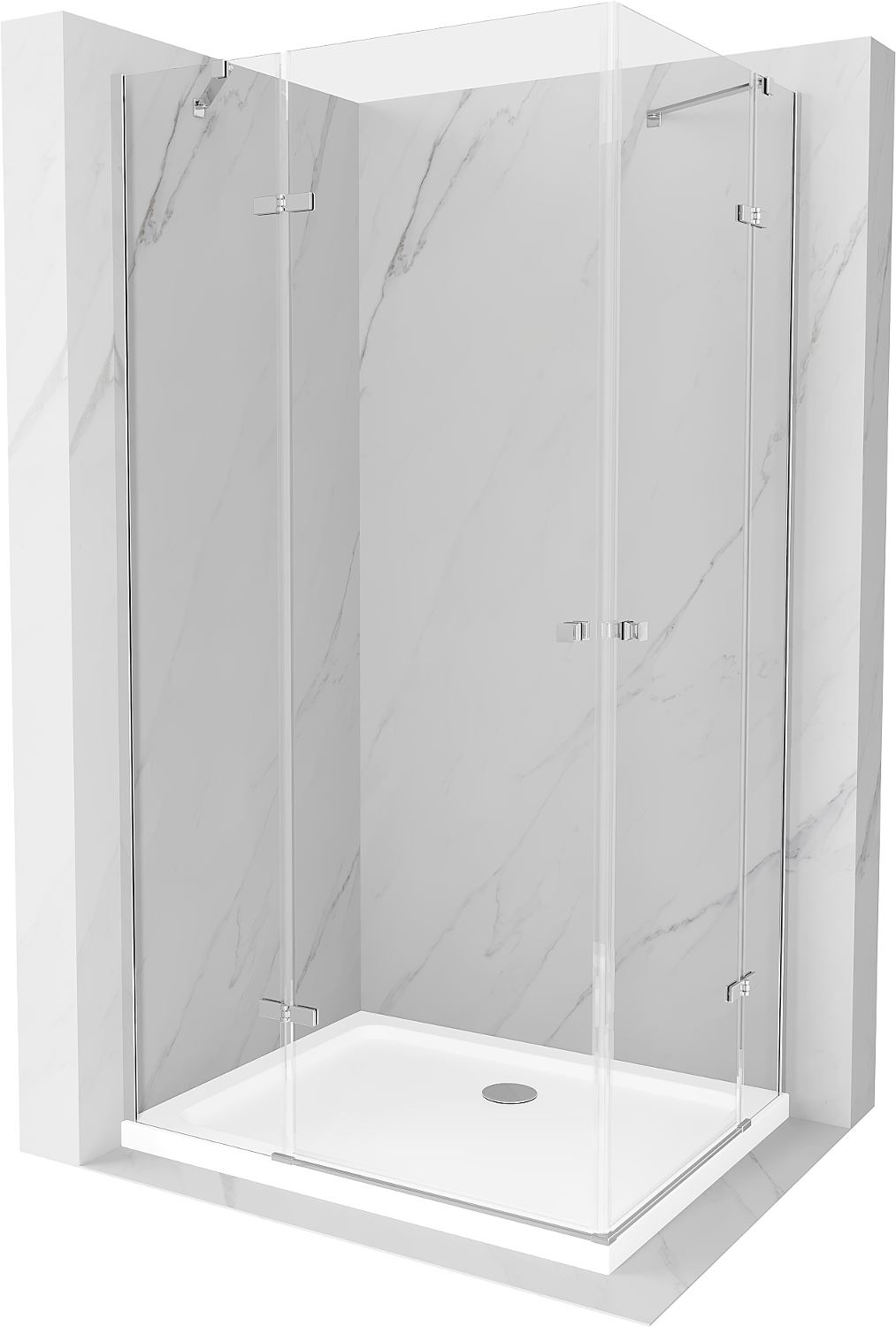 Mexen Roma Duo kabina prysznicowa uchylna 80 x 70 cm, transparent, chrom + brodzik Flat - 854-080-070-01-02-4010