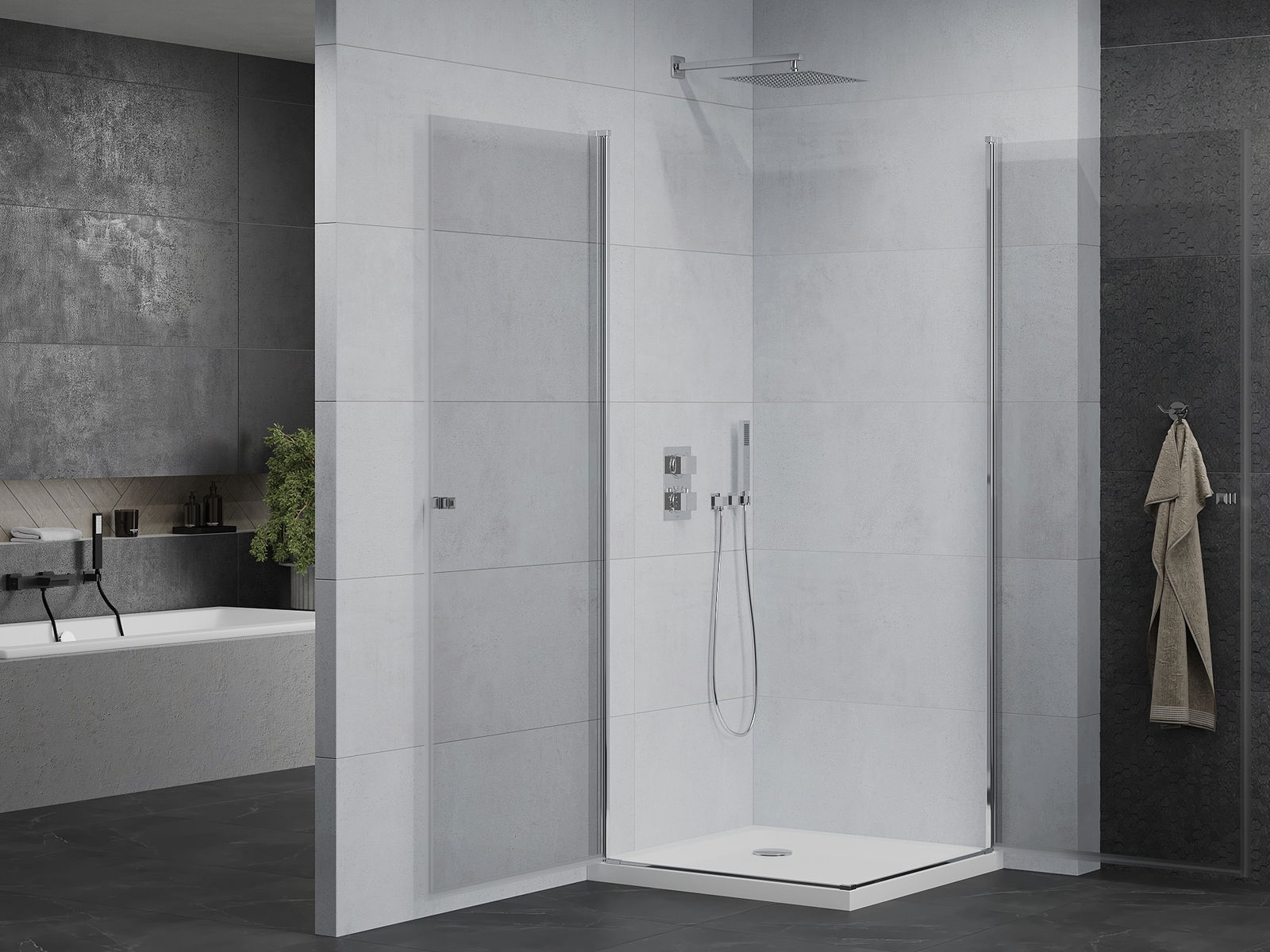 Dzięki zastosowaniu uniwersalnego systemu mocowania, drzwi prysznicowe mogą zostać zamontowane z prawej lub z lewej strony, zależnie od potrzeb. Dzięki temu możesz z łatwością zaprojektować prysznic dopasowany do przestrzeni łazienki.
