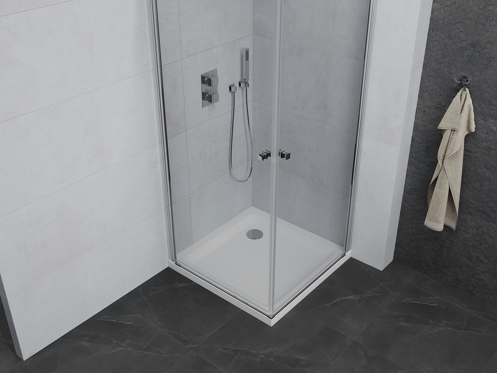 Mexen Pretoria Duo kabina prysznicowa uchylna 70 x 70 cm, transparent, chrom + brodzik Flat - 852-070-070-01-02-4010