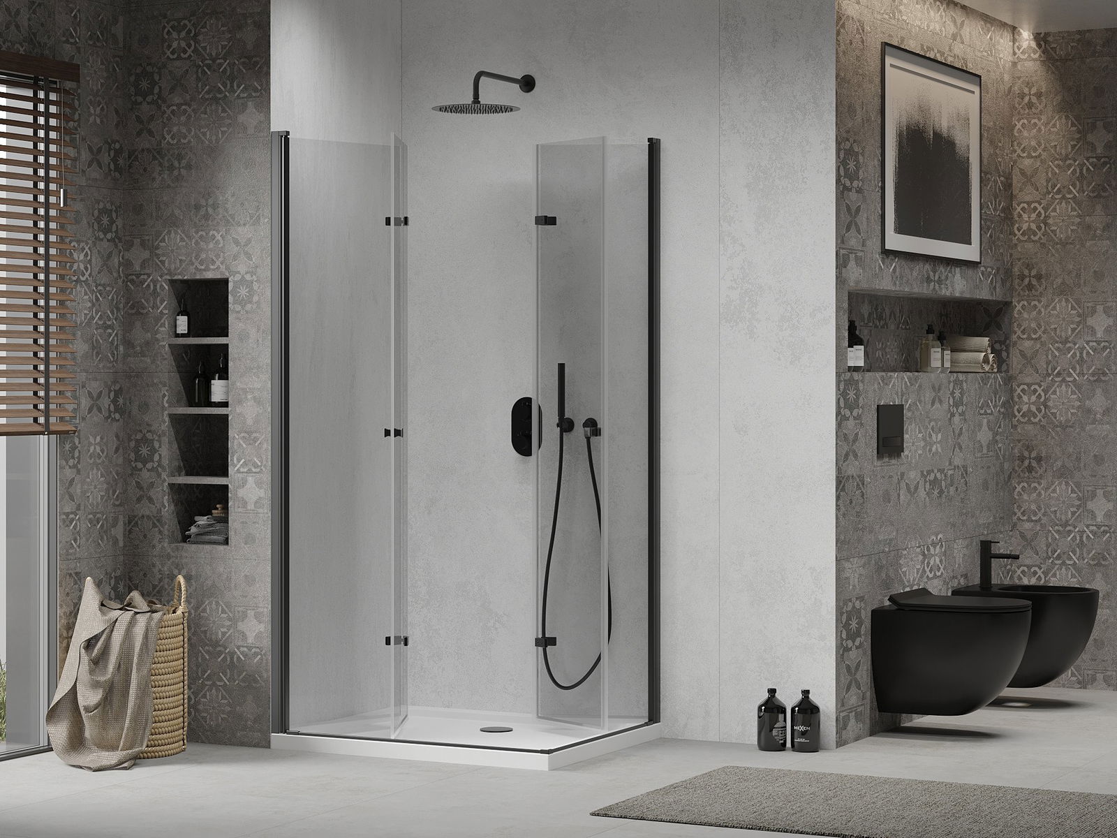 Mexen Lima Duo kabina prysznicowa składana 80 x 70 cm, transparent, czarna + brodzik Flat - 856-080-070-70-02-4010B