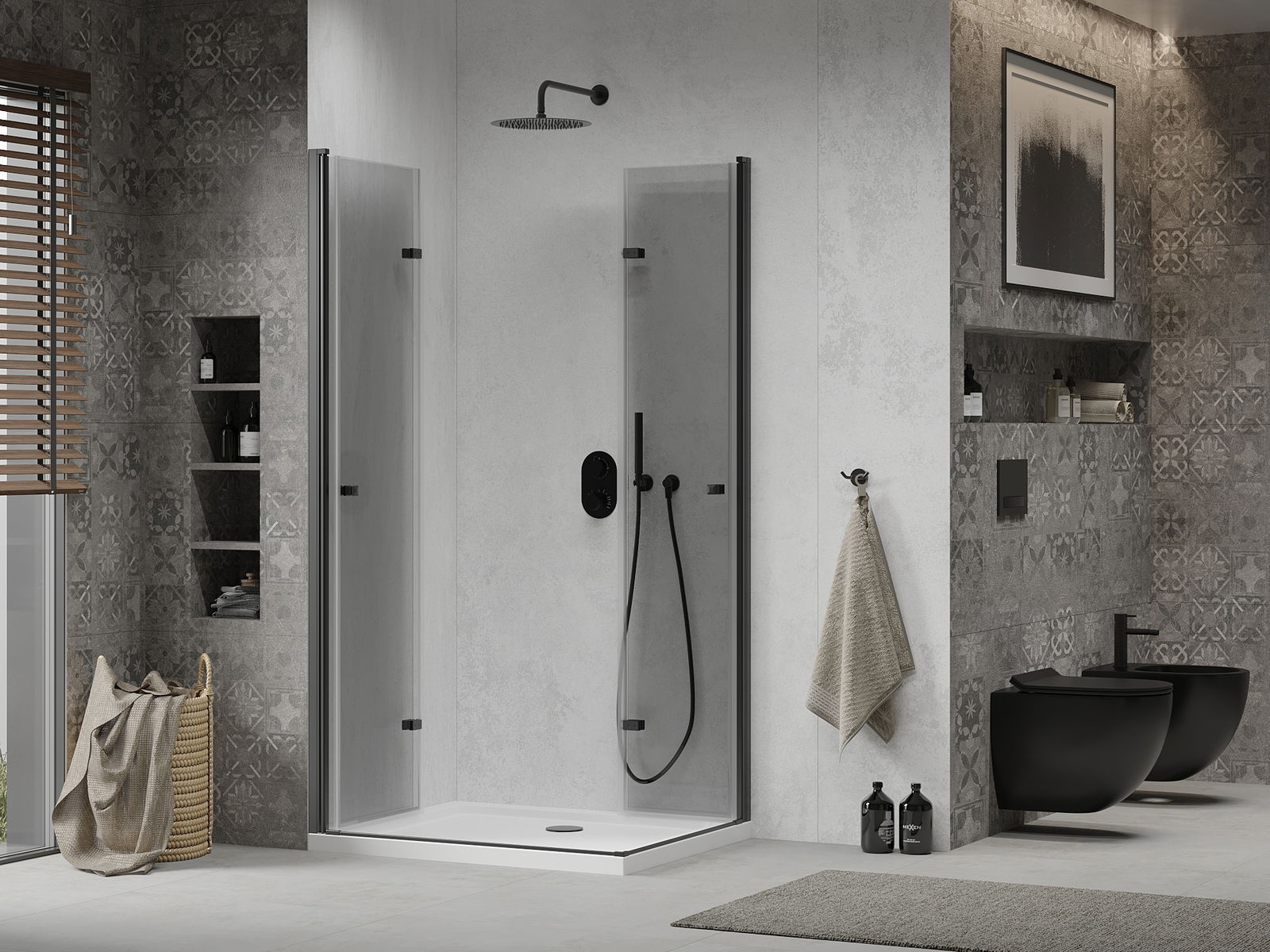 Możliwość składania drzwi, zarówno do zewnątrz, jak i do wewnątrz, pozwala uzyskać więcej przestrzeni podczas niekorzystania z prysznica. Jest to idealne rozwiązanie do mniejszych łazienek, maksymalnie wykorzystujące dostępną powierzchnię.
