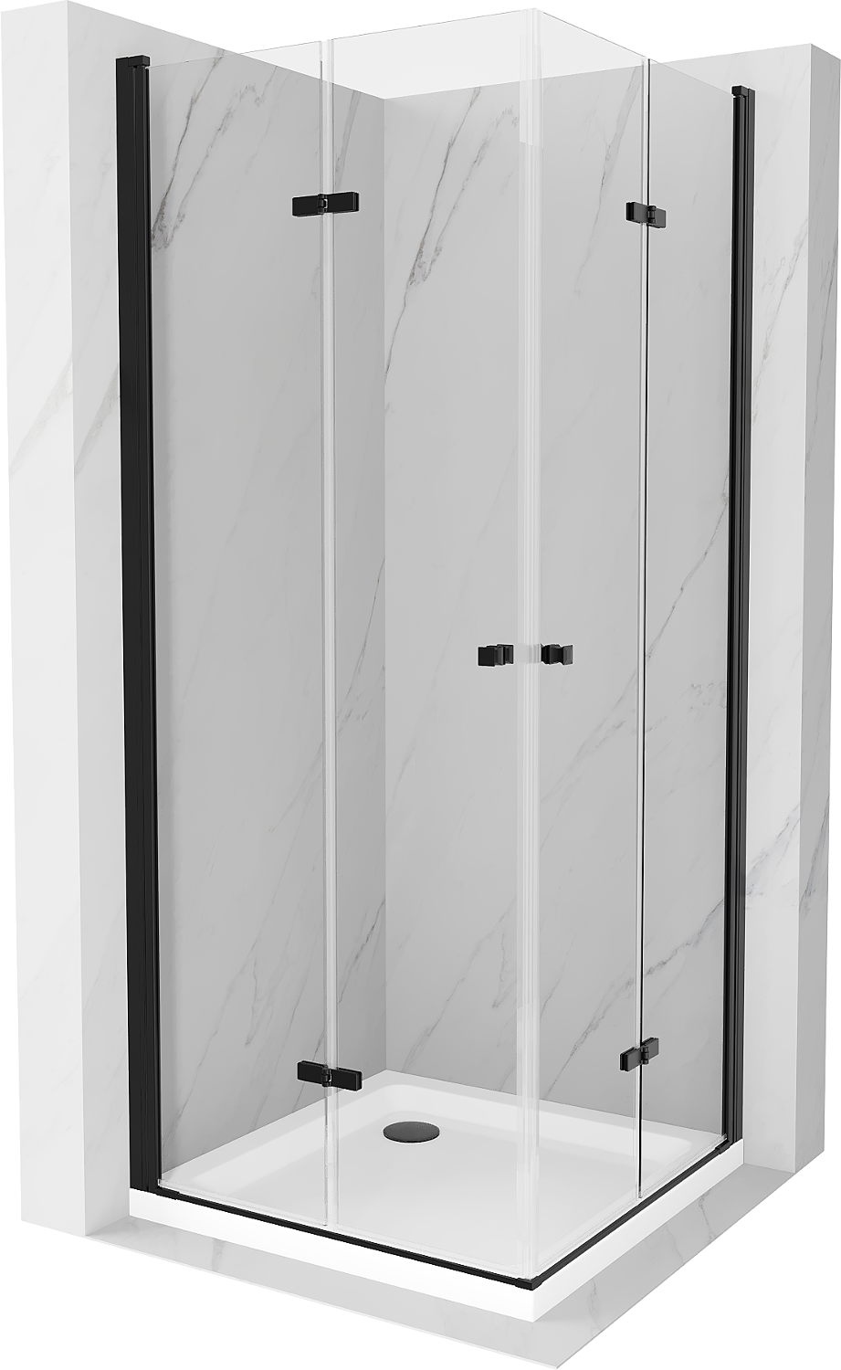 Mexen Lima Duo kabina prysznicowa składana 100 x 100 cm, transparent, czarna + brodzik Flat - 856-100-100-70-02-4010B