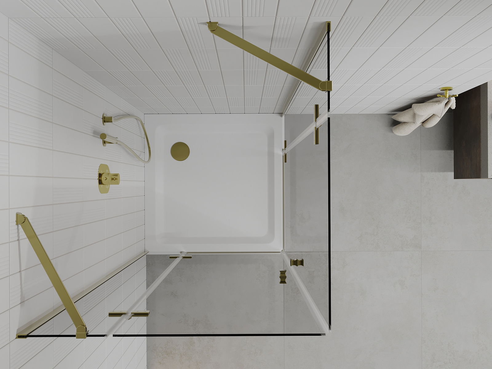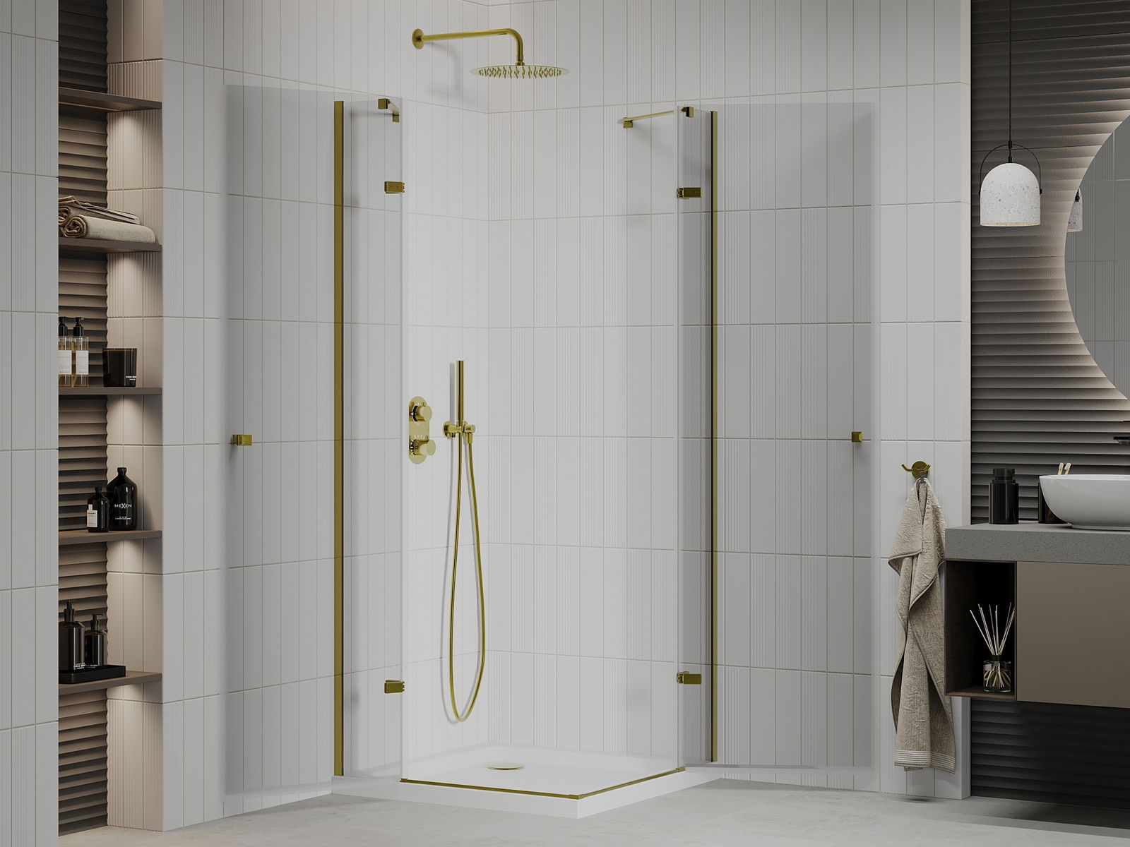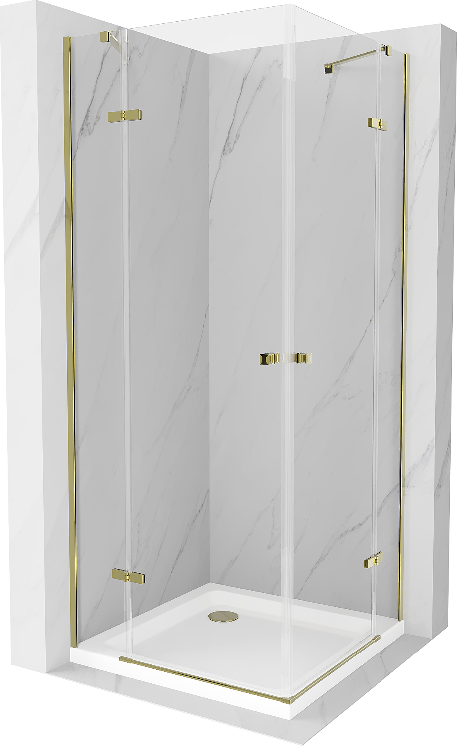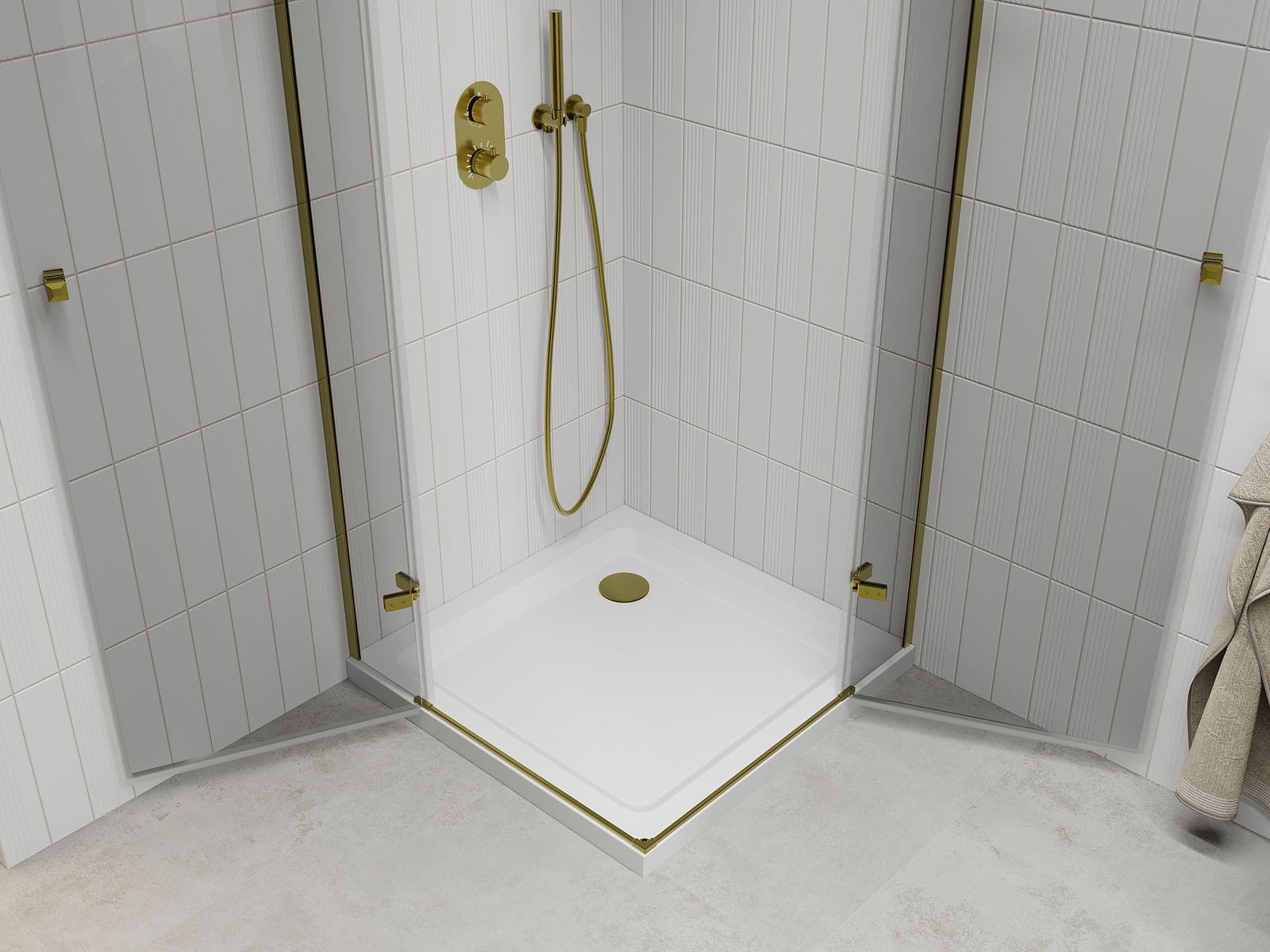 Mexen Roma Duo kabina prysznicowa uchylna 70 x 70 cm, transparent, złota + brodzik Flat - 854-070-070-50-02-4010G