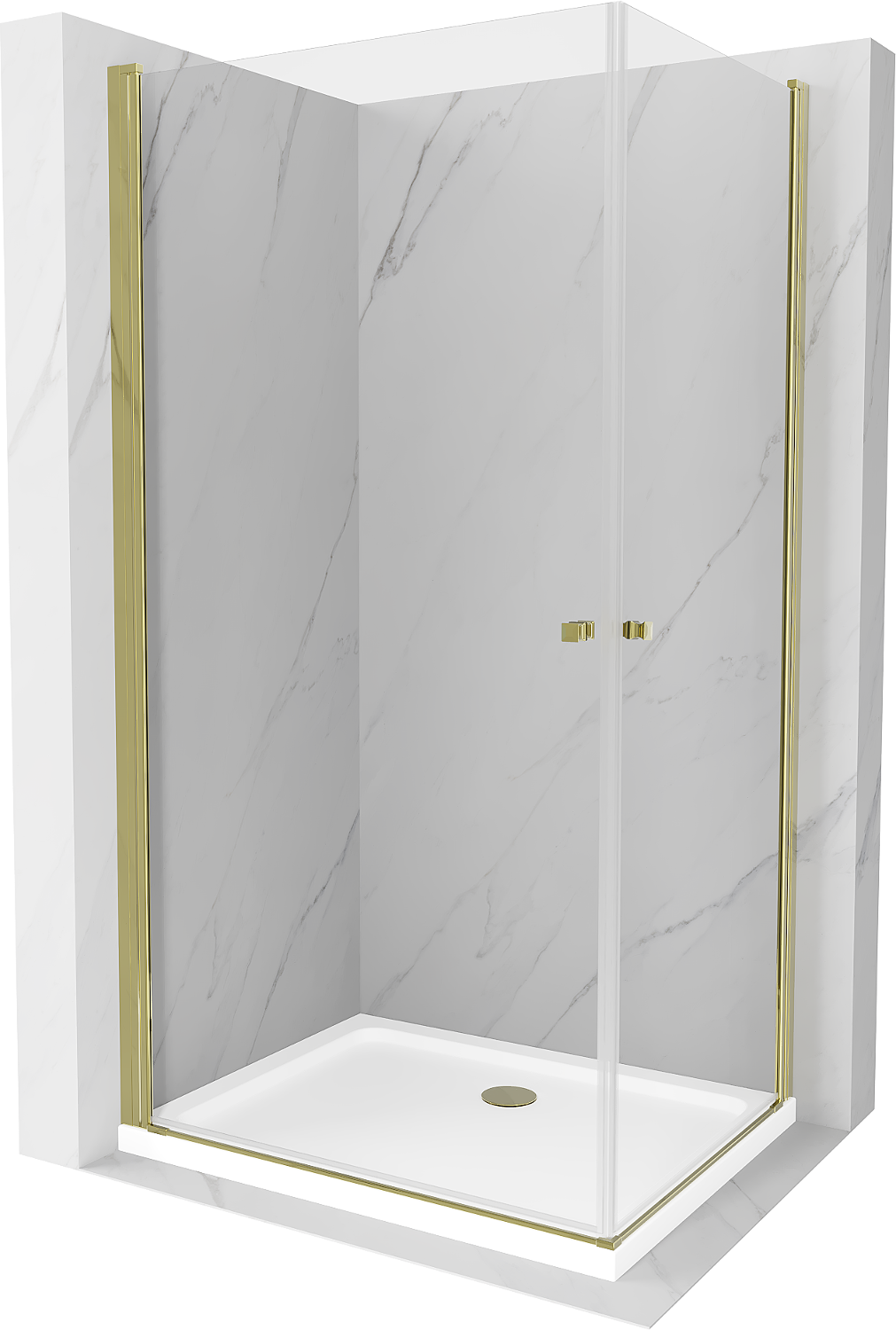 Mexen Pretoria Duo kabina prysznicowa uchylna 80 x 70 cm, transparent, złoty + brodzik Flat - 852-080-070-50-02-4010G