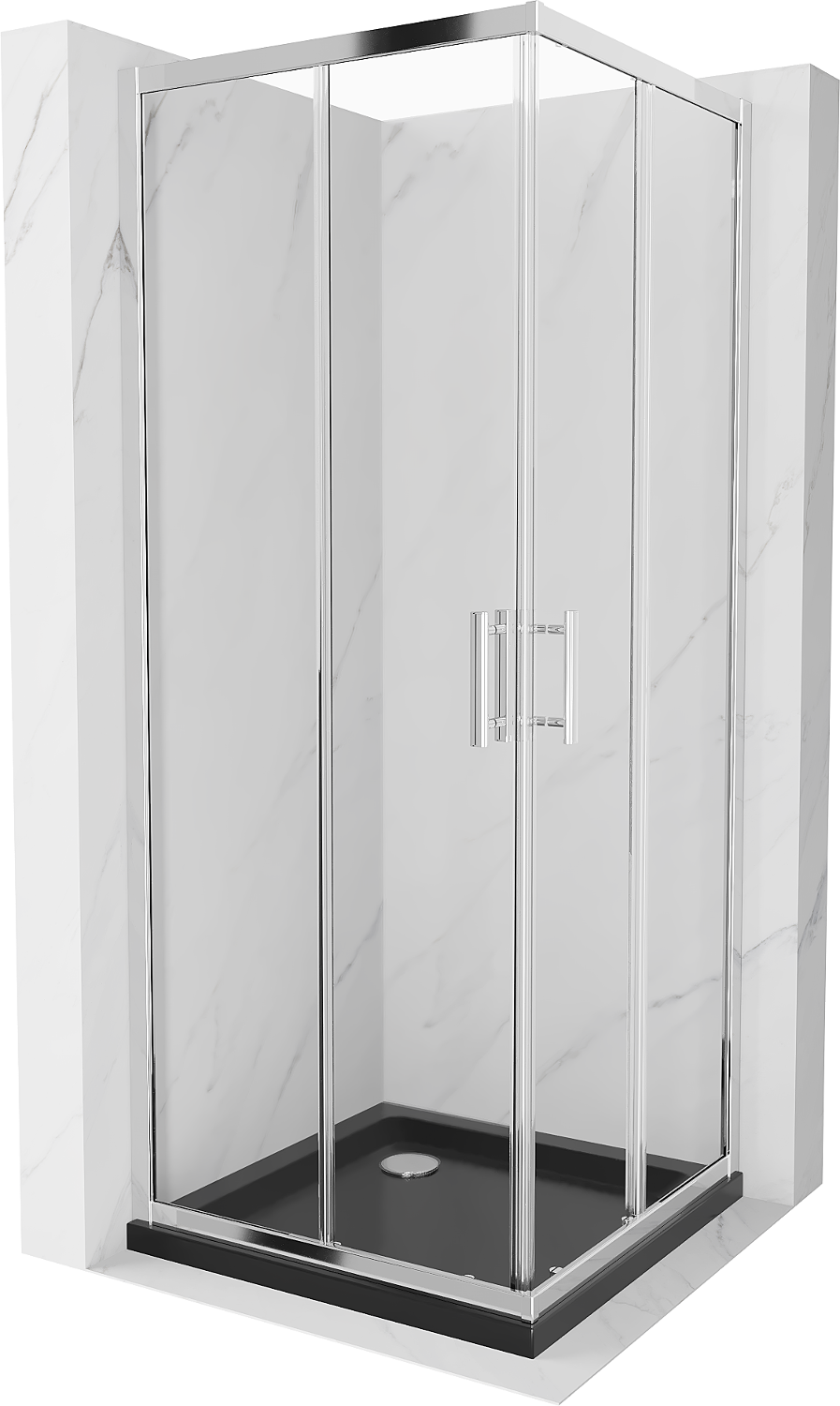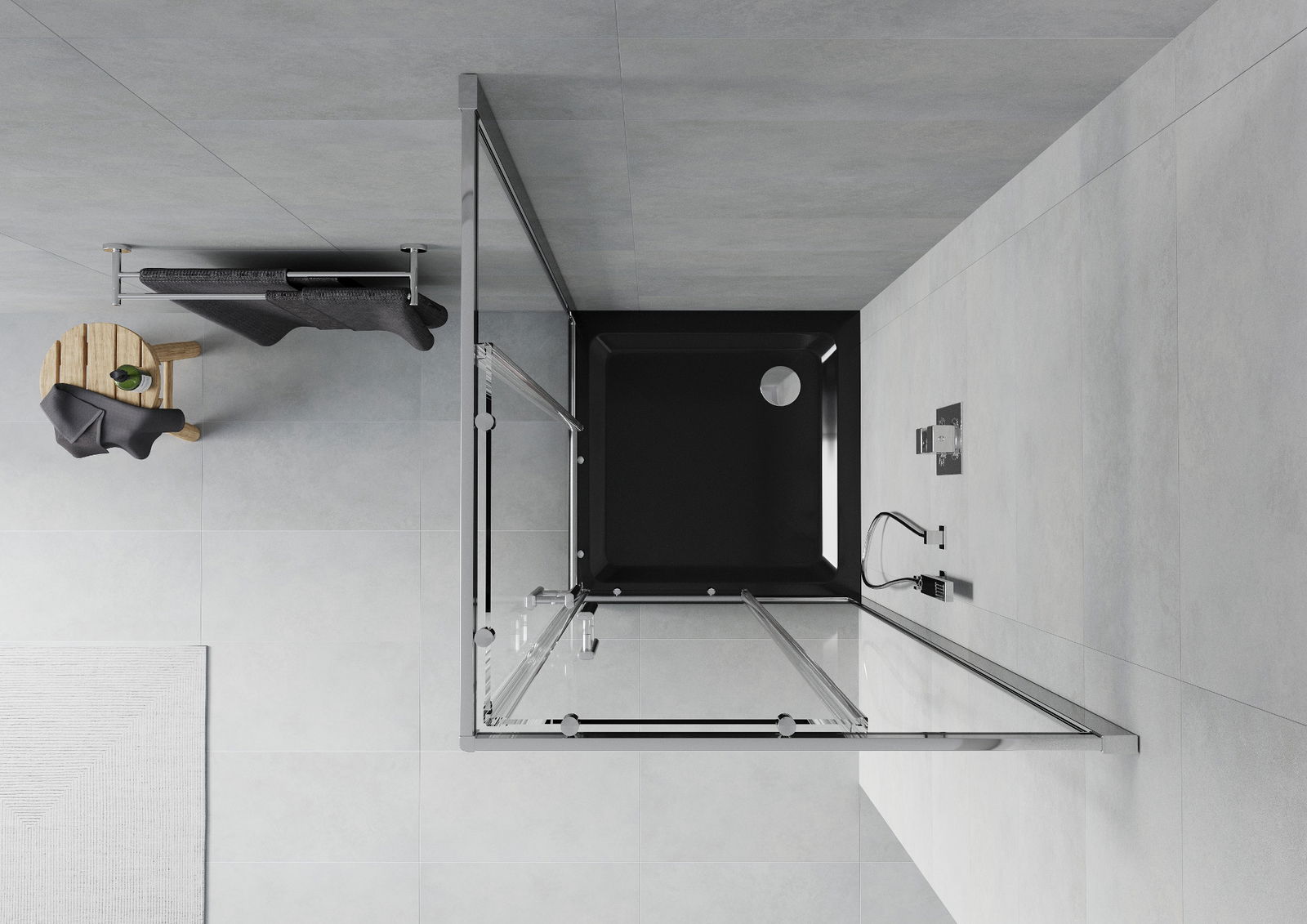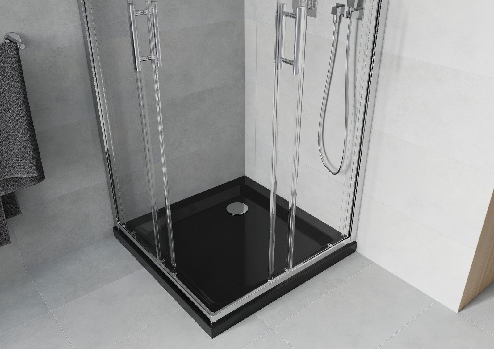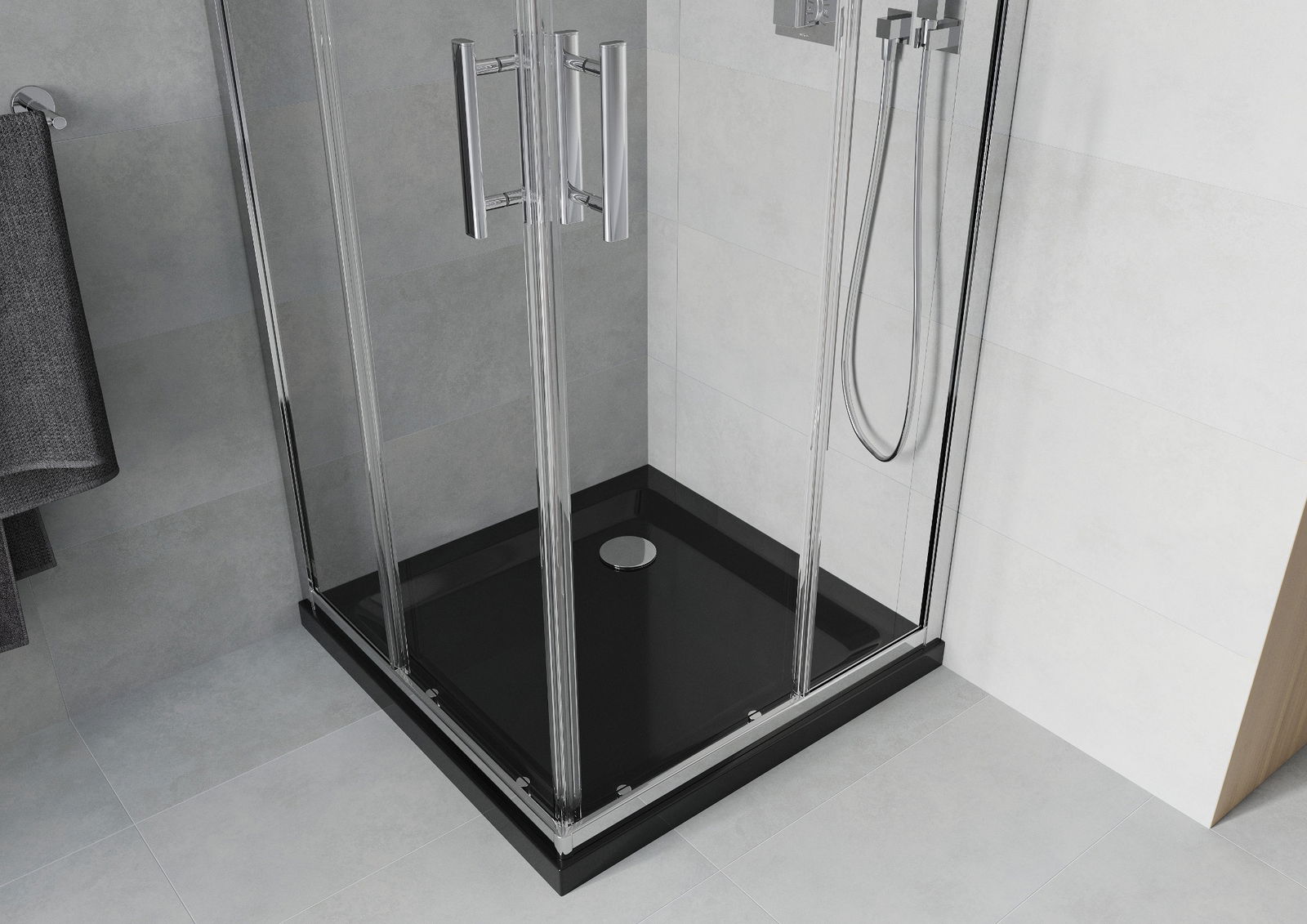Mexen Rio kabina prysznicowa kwadratowa 90 x 90 cm, transparent, chrom + brodzik Flat, czarny - 860-090-090-01-00-4070