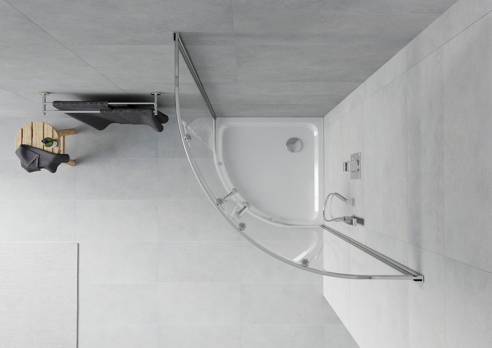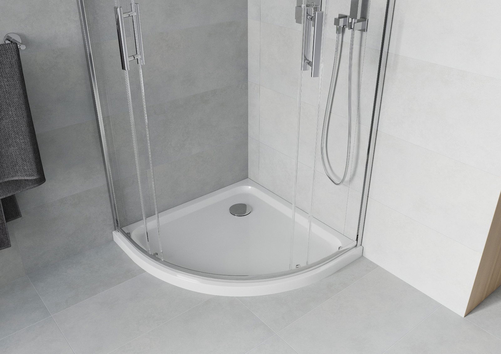 Poręczny i wygodny uchwyt został wykonany z trwałego i odpornego metalu. Modny kształt w połączeniu z wykończeniem dopasowanym do koloru profili nadaje całości nowoczesnego i stylowego wyglądu, podkreślając estetykę każdej łazienki.