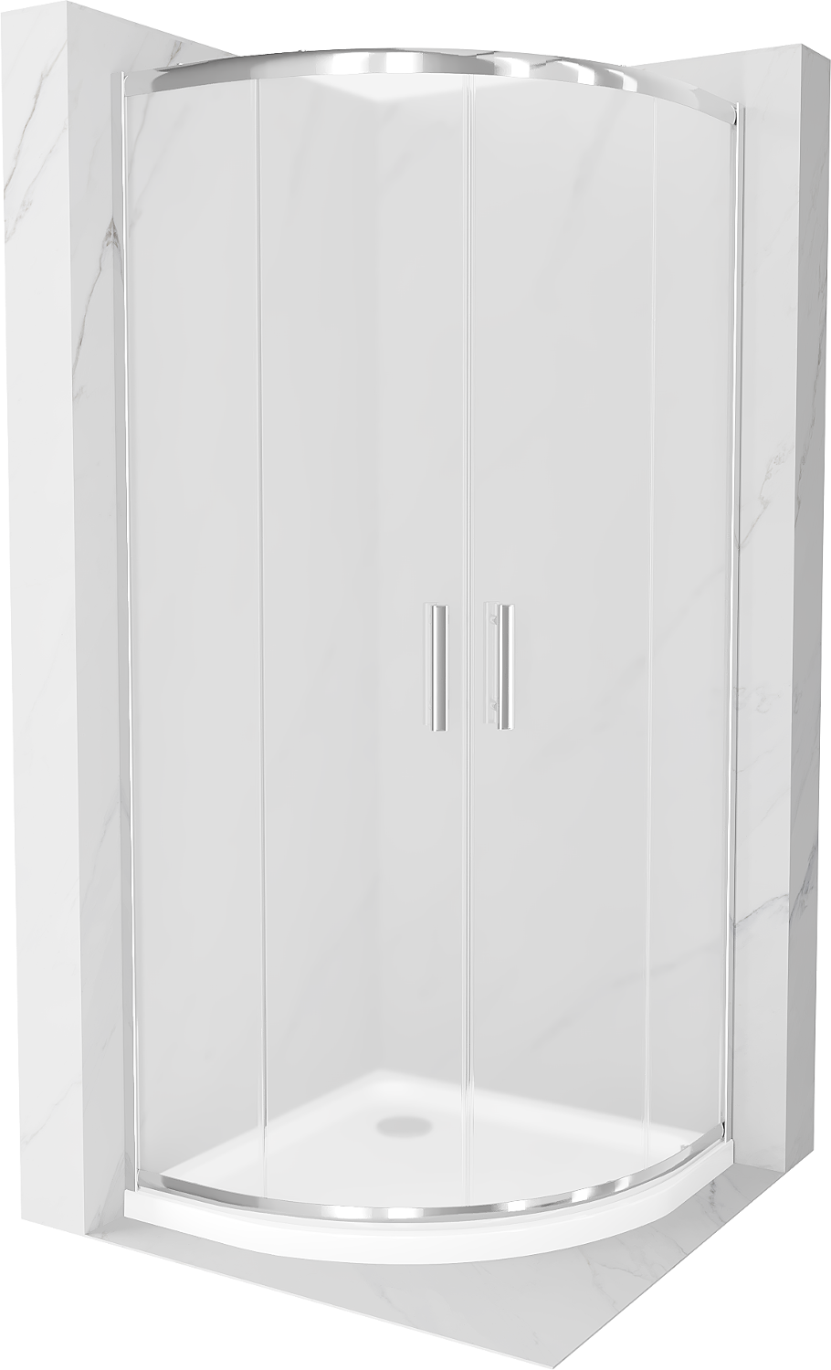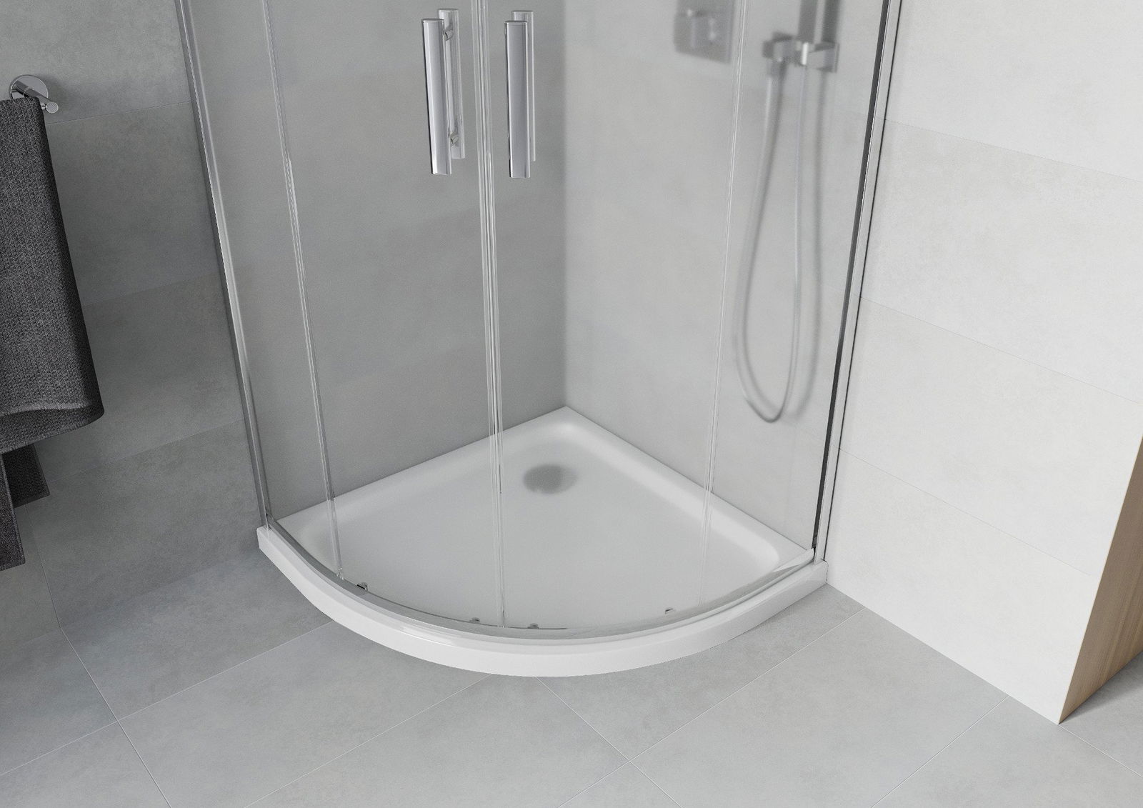 Mexen Rio kabina prysznicowa półokrągła 80 x 80 cm, szron, chrom + brodzik Flat, biały - 863-080-080-01-30-4110