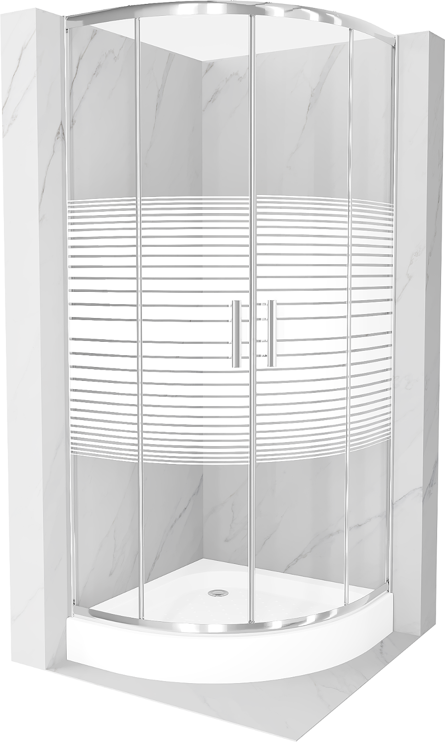 Mexen Rio kabina prysznicowa półokrągła 90 x 90 cm, białe pasy, chrom + brodzik Rio, biały - 863-090-090-01-20-4710