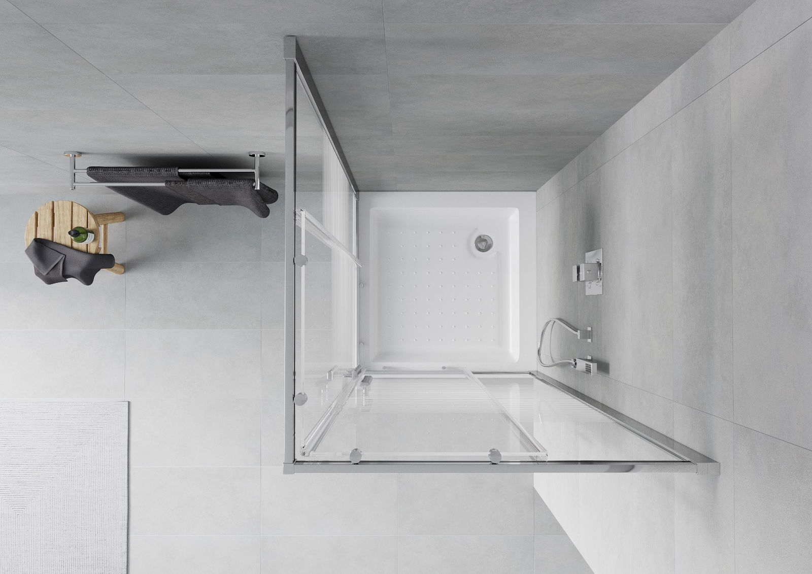 Poręczny i wygodny uchwyt został wykonany z trwałego i odpornego metalu. Modny kształt w połączeniu z wykończeniem dopasowanym do koloru profili nadaje całości nowoczesnego i stylowego wyglądu, podkreślając estetykę każdej łazienki.