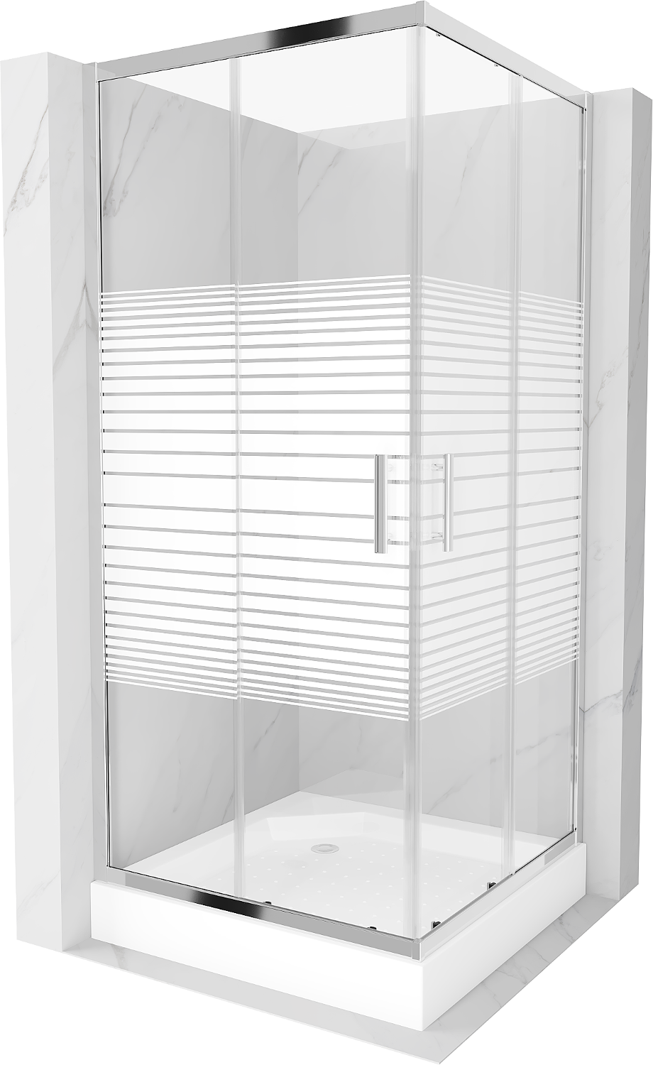 Mexen Rio kabina prysznicowa kwadratowa 90 x 90 cm, białe pasy, chrom + brodzik Rio, biały - 860-090-090-01-20-4510