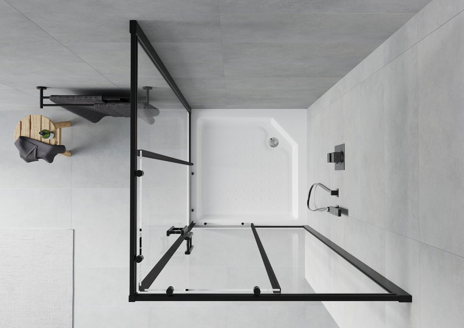 Mexen Rio kabina prysznicowa kwadratowa 90 x 90 cm, transparent, czarna + brodzik Rio, biały - 860-090-090-70-00-4510