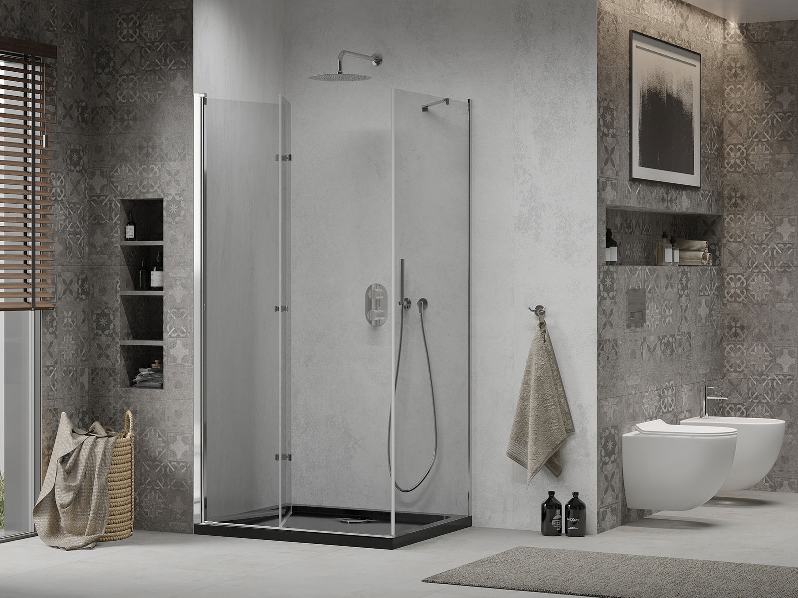 Możliwość składania drzwi, zarówno do zewnątrz, jak i do wewnątrz, pozwala uzyskać więcej przestrzeni podczas niekorzystania z prysznica. Jest to idealne rozwiązanie do mniejszych łazienek, maksymalnie wykorzystujące dostępną powierzchnię.