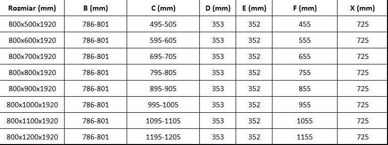 Rozmiar: 70x80 cm (drzwi 70 cm, ścianka 80 cm)