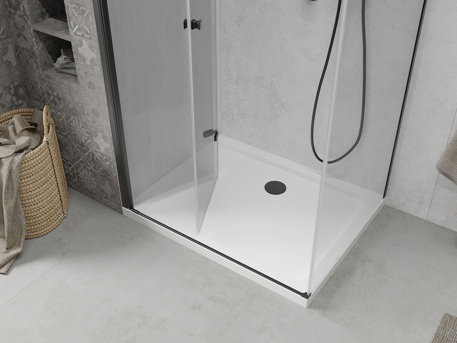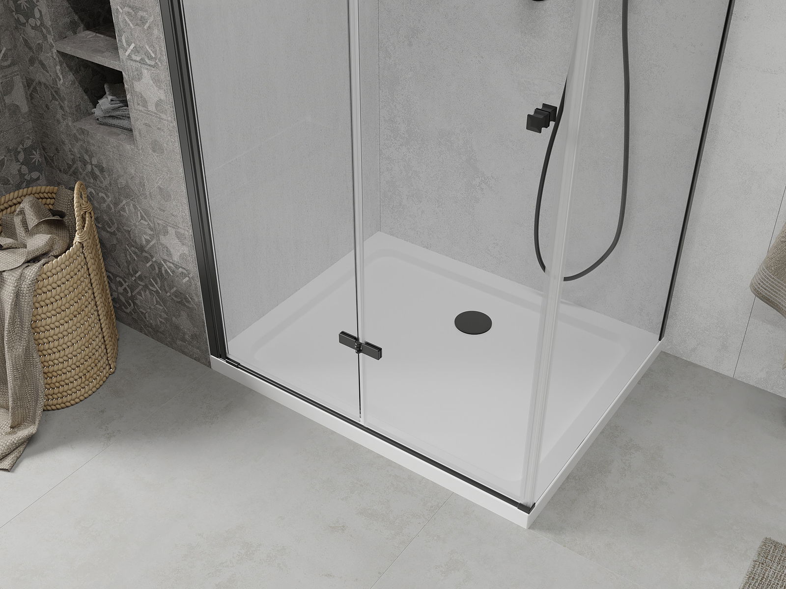 Możliwość składania drzwi, zarówno do zewnątrz, jak i do wewnątrz, pozwala uzyskać więcej przestrzeni podczas niekorzystania z prysznica. Jest to idealne rozwiązanie do mniejszych łazienek, maksymalnie wykorzystujące dostępną powierzchnię.