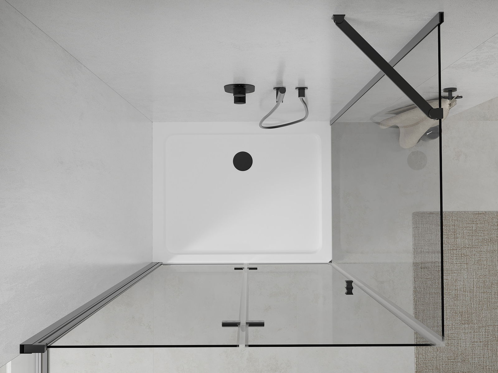 Poręczny i wygodny uchwyt został wykonany z trwałego i odpornego metalu. Modny kształt w połączeniu z wykończeniem dopasowanym do koloru profili nadaje całości nowoczesnego i stylowego wyglądu, podkreślając estetykę każdej łazienki.