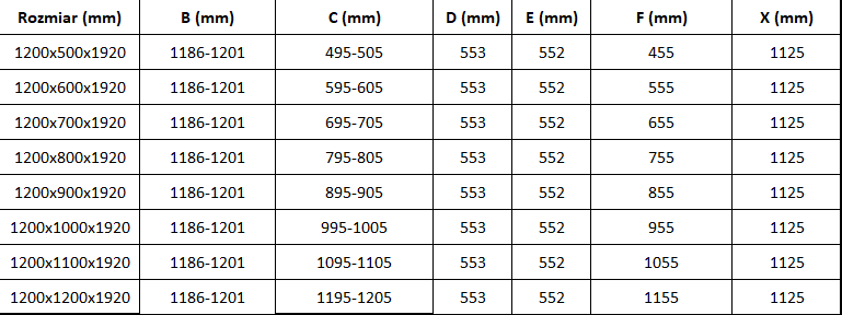 Rozmiar: 120x80 cm (drzwi 120 cm, ścianka 80 cm)