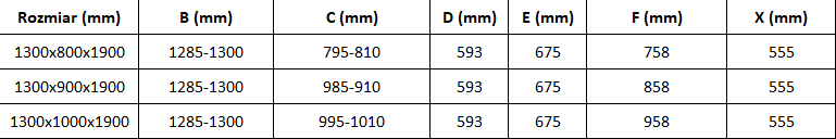 Rozmiar: 130x100 cm (drzwi 130 cm, ścianka 100 cm)