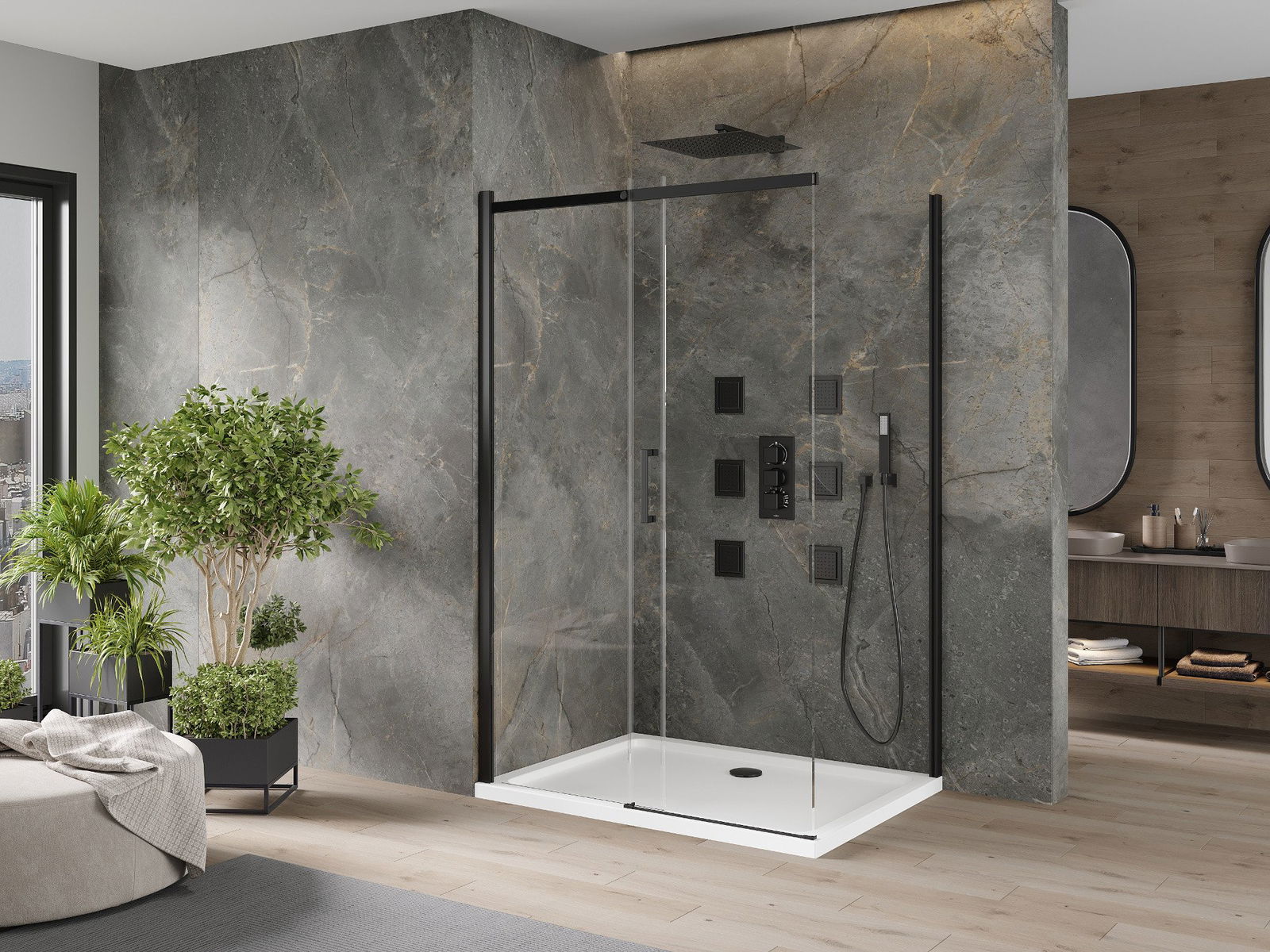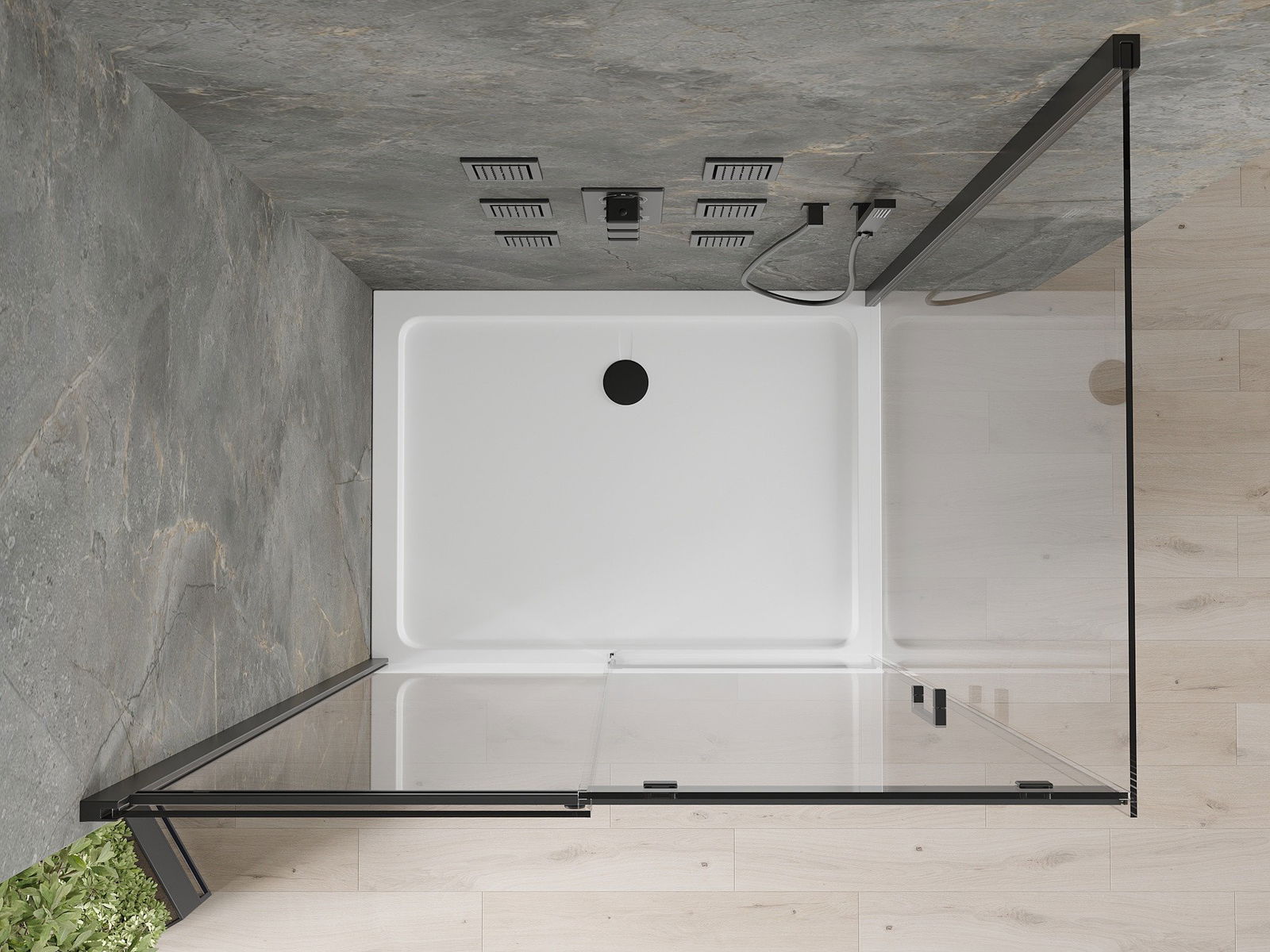 Mexen Omega kabina prysznicowa rozsuwana 140 x 100 cm, transparent, czarna + brodzik Flat, biały - 825-140-100-70-00-4010B