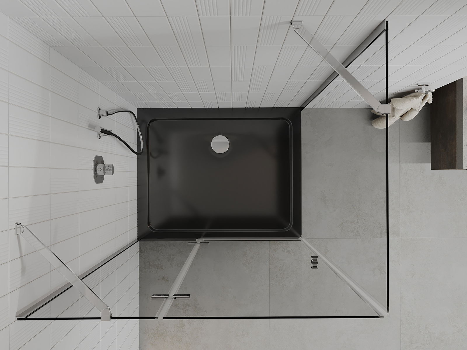 Mexen Roma kabina prysznicowa uchylna 100 x 90 cm, transparent, chrom + brodzik Flat, czarny - 854-100-090-01-00-4070