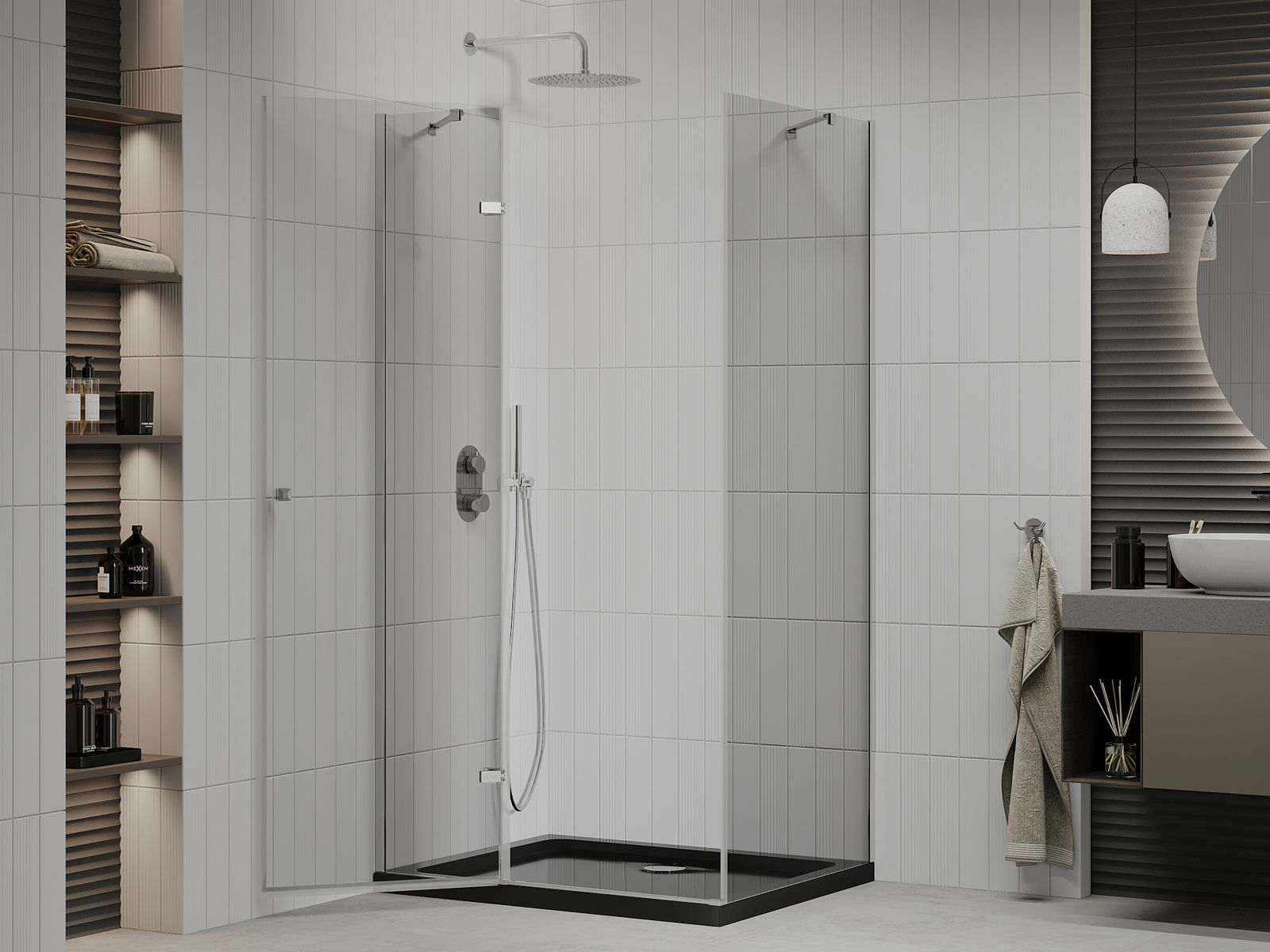 Dzięki zastosowaniu uniwersalnego systemu mocowania, drzwi prysznicowe mogą zostać zamontowane z prawej lub z lewej strony, zależnie od potrzeb. Dzięki temu możesz z łatwością zaprojektować prysznic dopasowany do przestrzeni łazienki.
