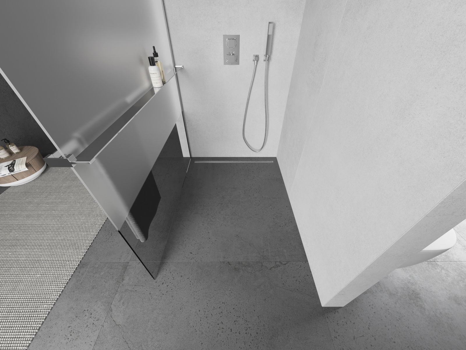 Mexen Kioto+ ścianka prysznicowa z półką Walk-in 90 x 200 cm, transparent/szron, chrom - 800-090-121-01-35