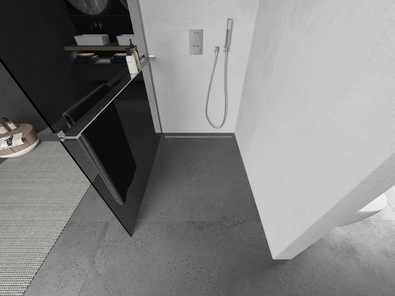Mexen Kioto+ ścianka prysznicowa z półką Walk-in 100 x 200 cm, grafit, chrom - 800-100-121-01-40