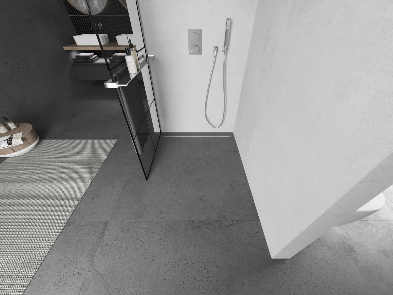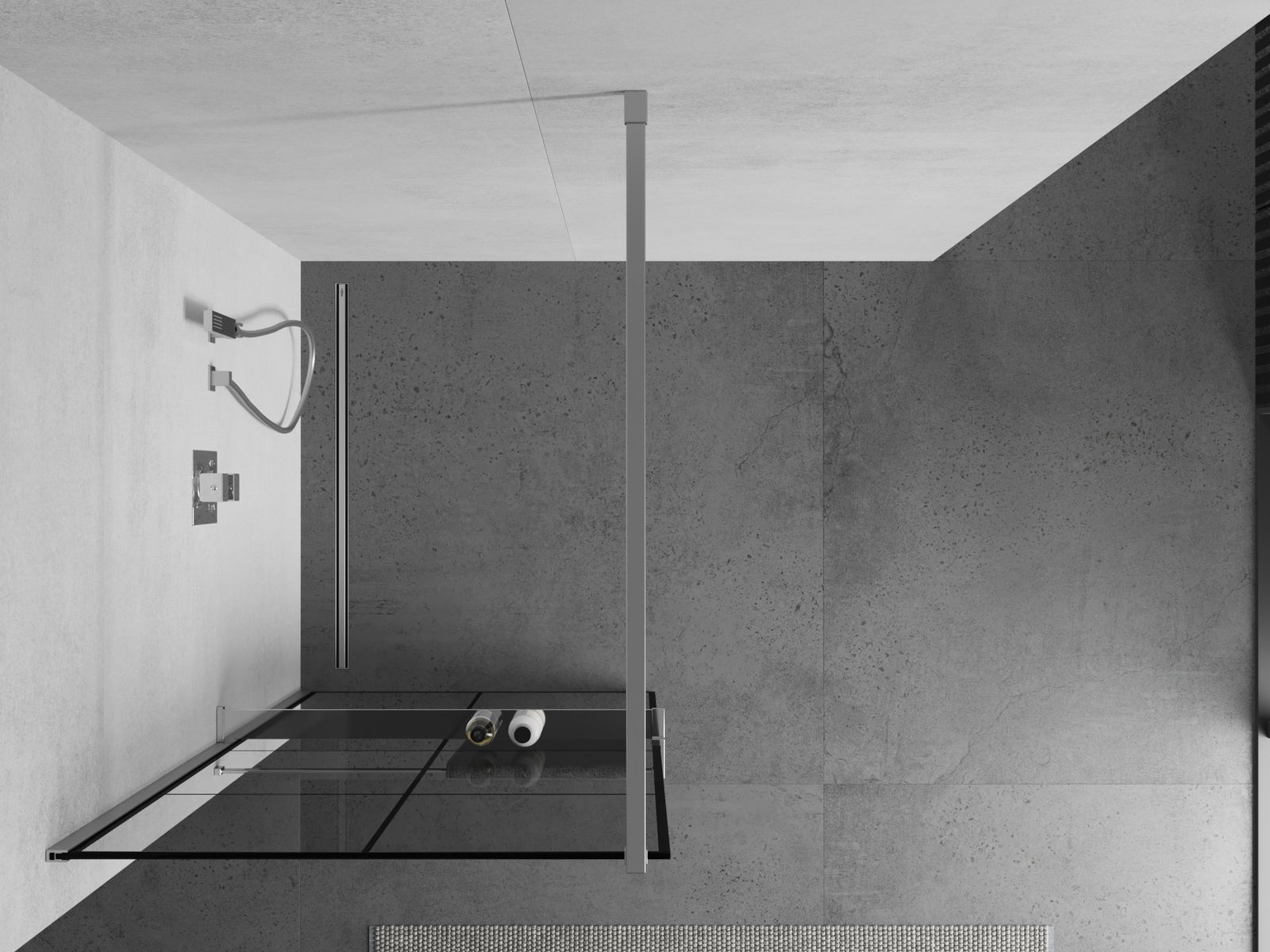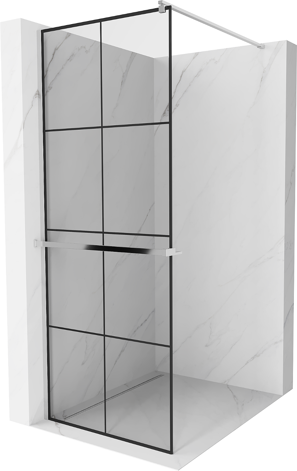 Mexen Kioto+ ścianka prysznicowa z półką Walk-in 70 x 200 cm, czarna kratka, chrom - 800-070-121-01-77
