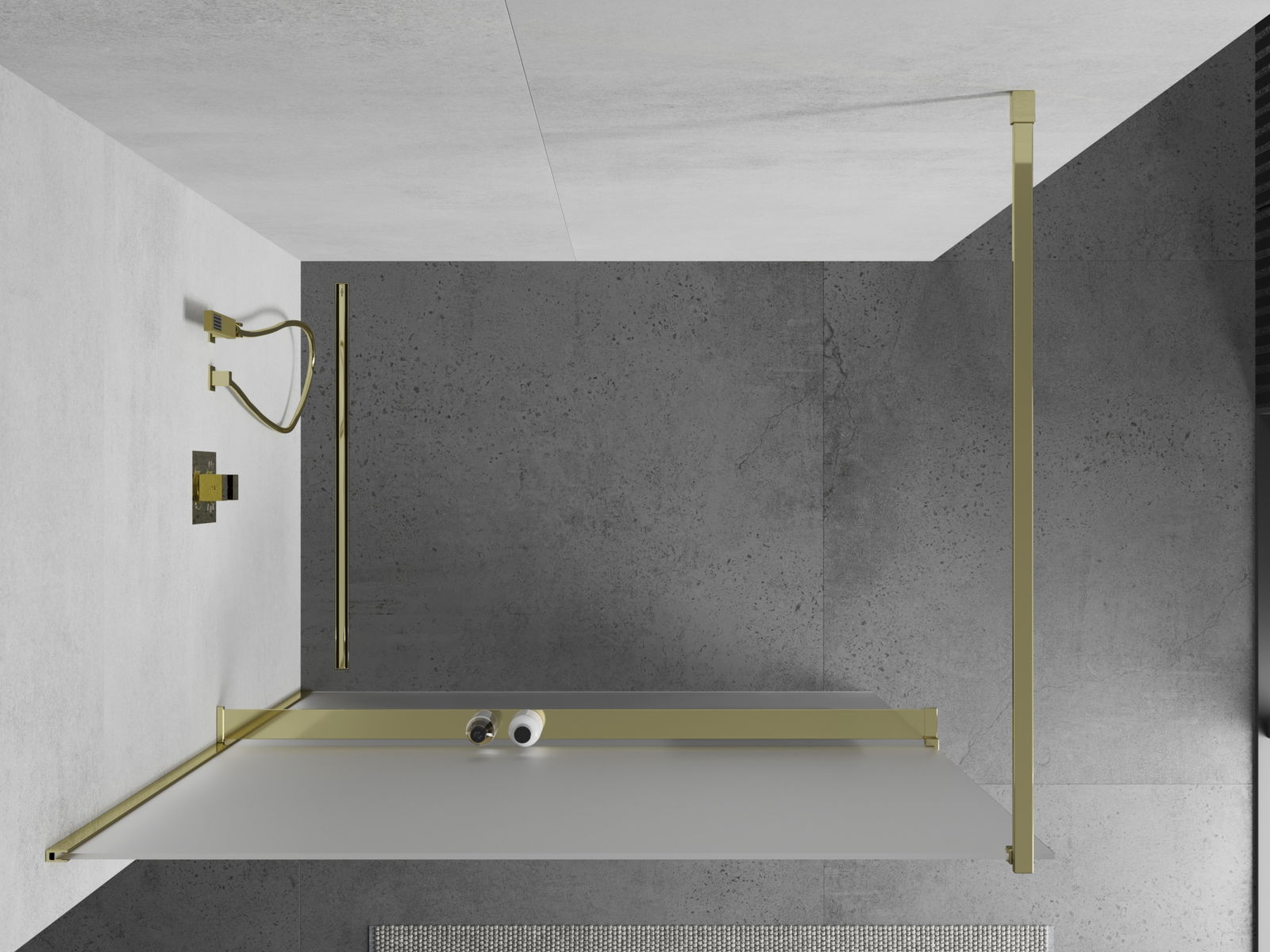 Mexen Kioto+ ścianka prysznicowa z półką Walk-in 90 x 200 cm, szron, złota - 800-090-121-50-30