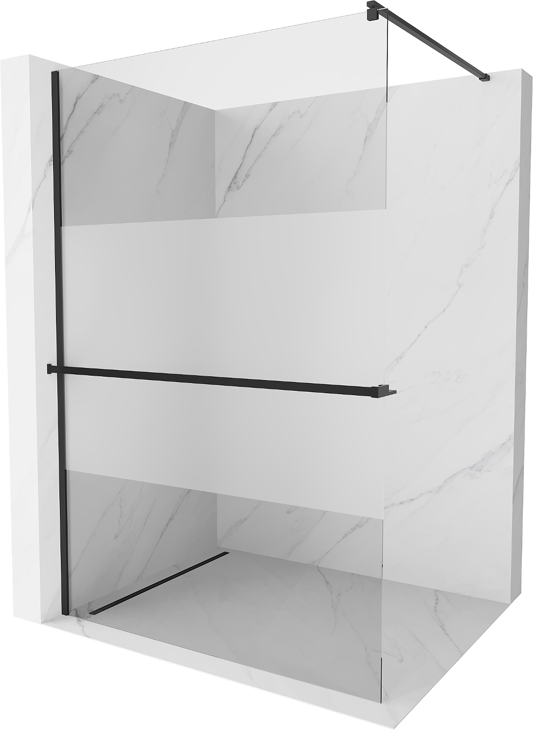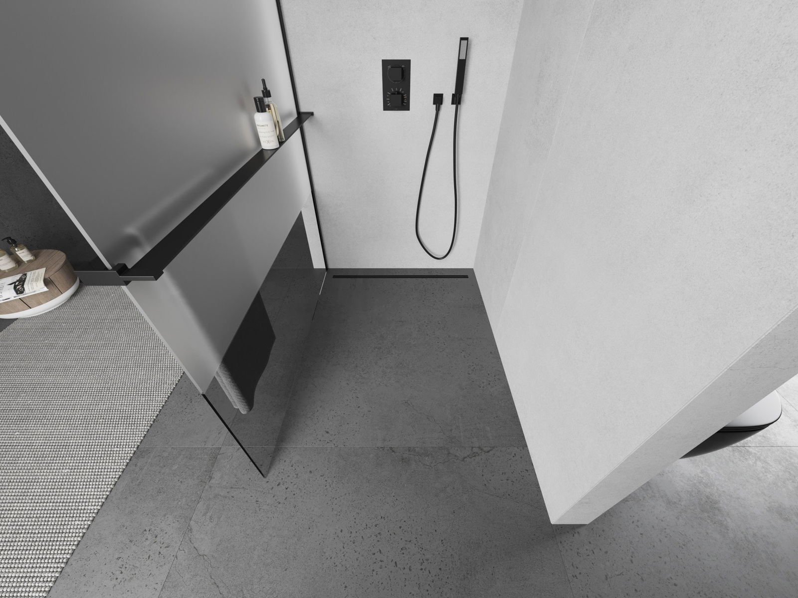Mexen Kioto+ ścianka prysznicowa z półką Walk-in 80 x 200 cm, transparent/szron, czarna - 800-080-121-70-35