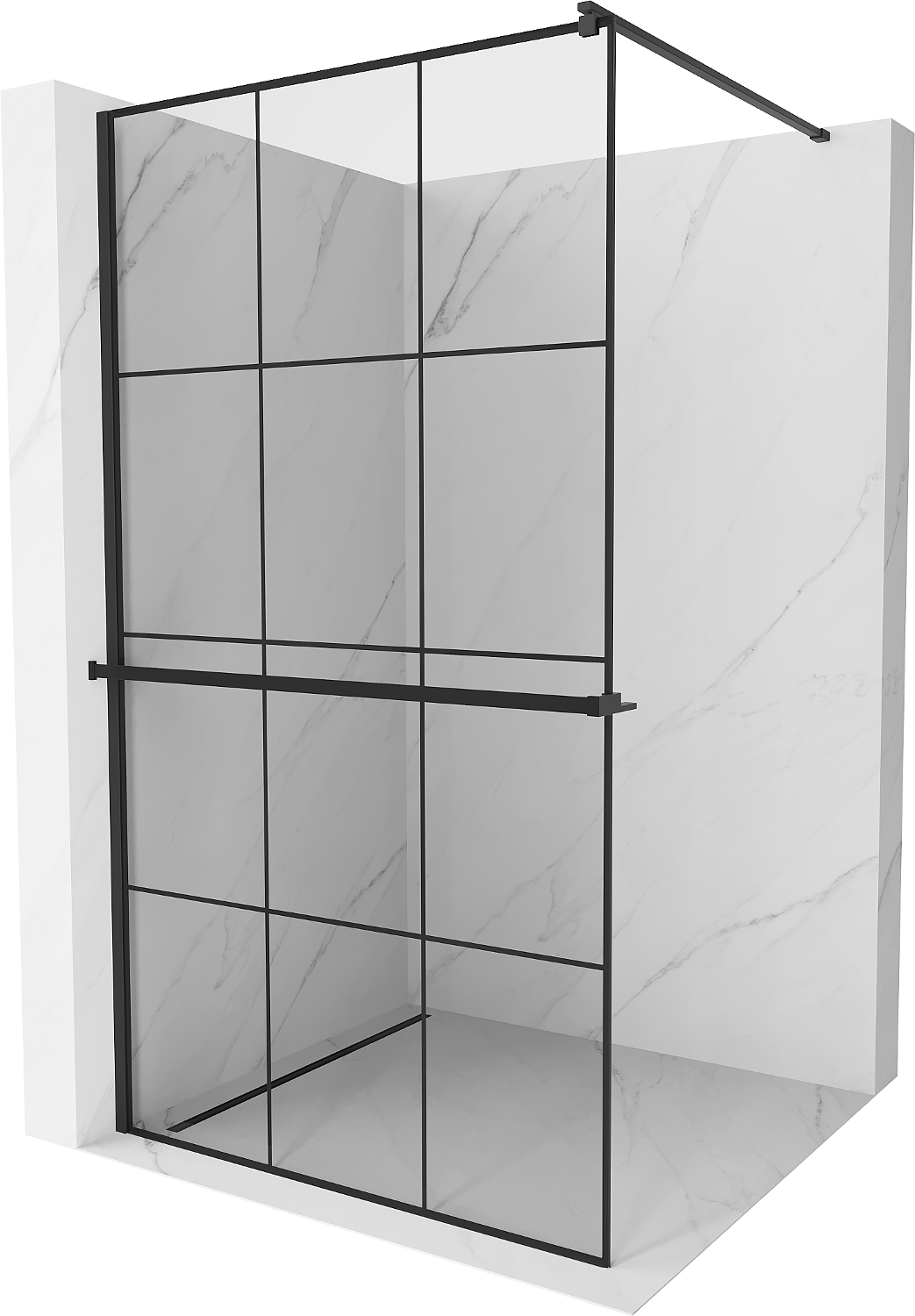 Mexen Kioto+ ścianka prysznicowa z półką Walk-in 100 x 200 cm, czarna kratka, czarna - 800-100-121-70-77