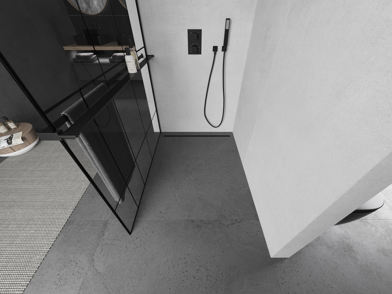 Mexen Kioto+ ścianka prysznicowa z półką Walk-in 90 x 200 cm, czarny wzór, czarna - 800-090-121-70-78