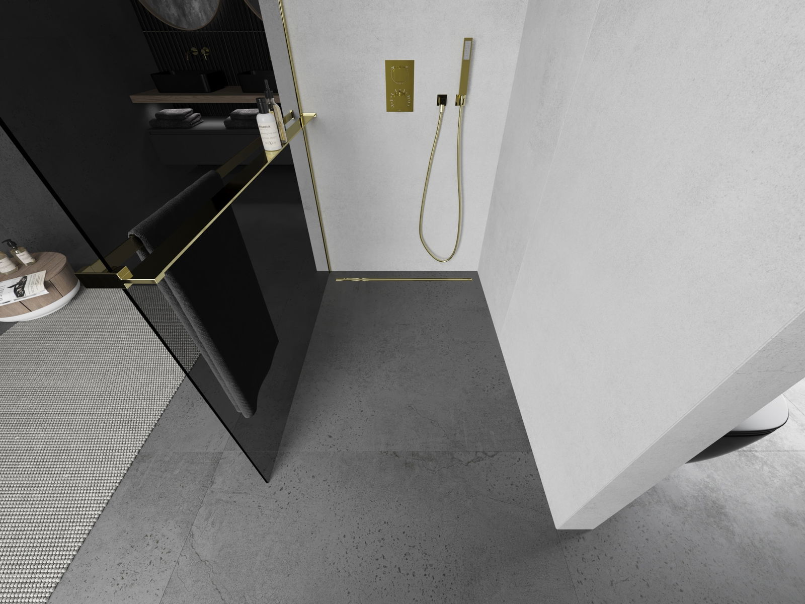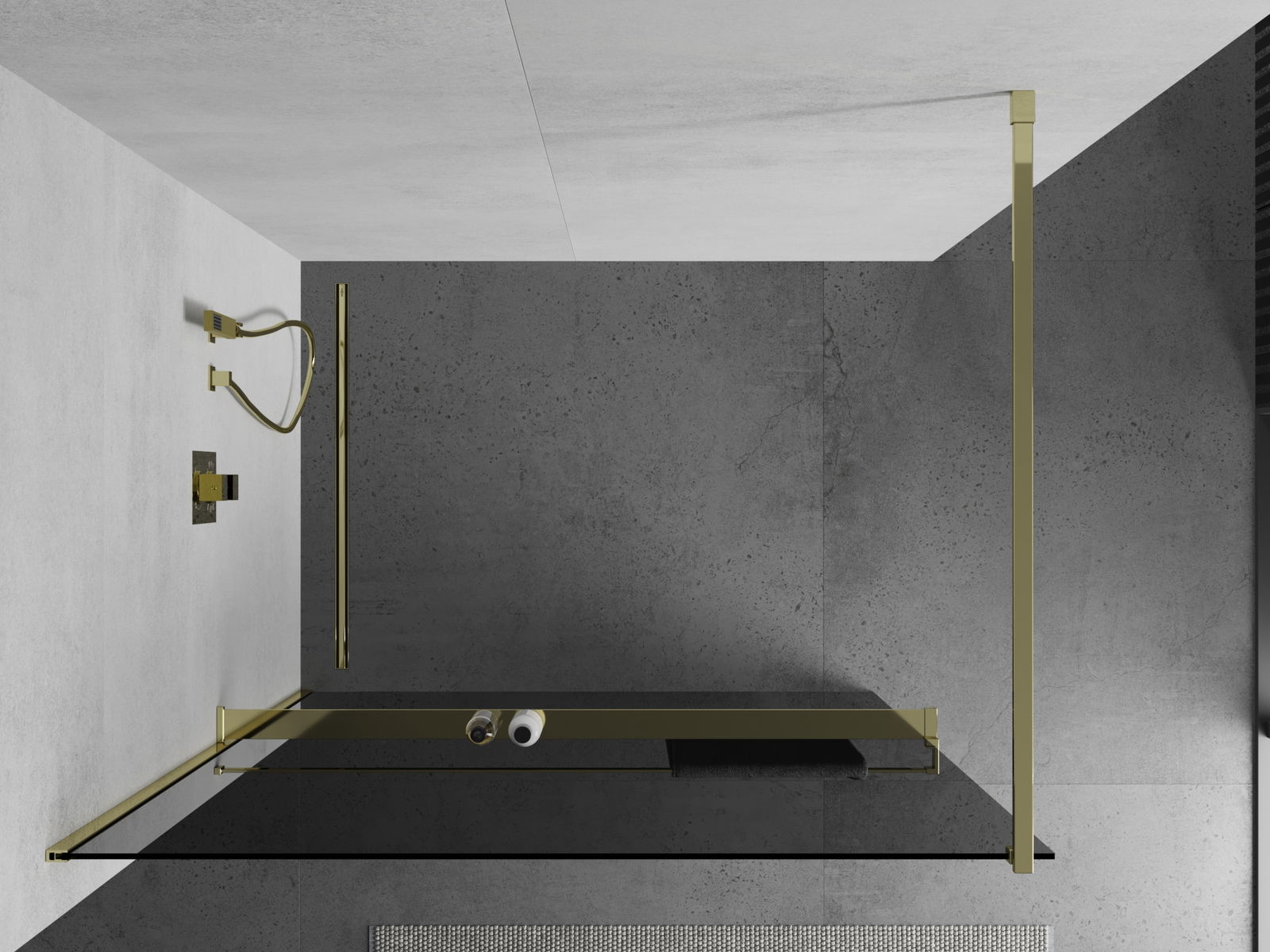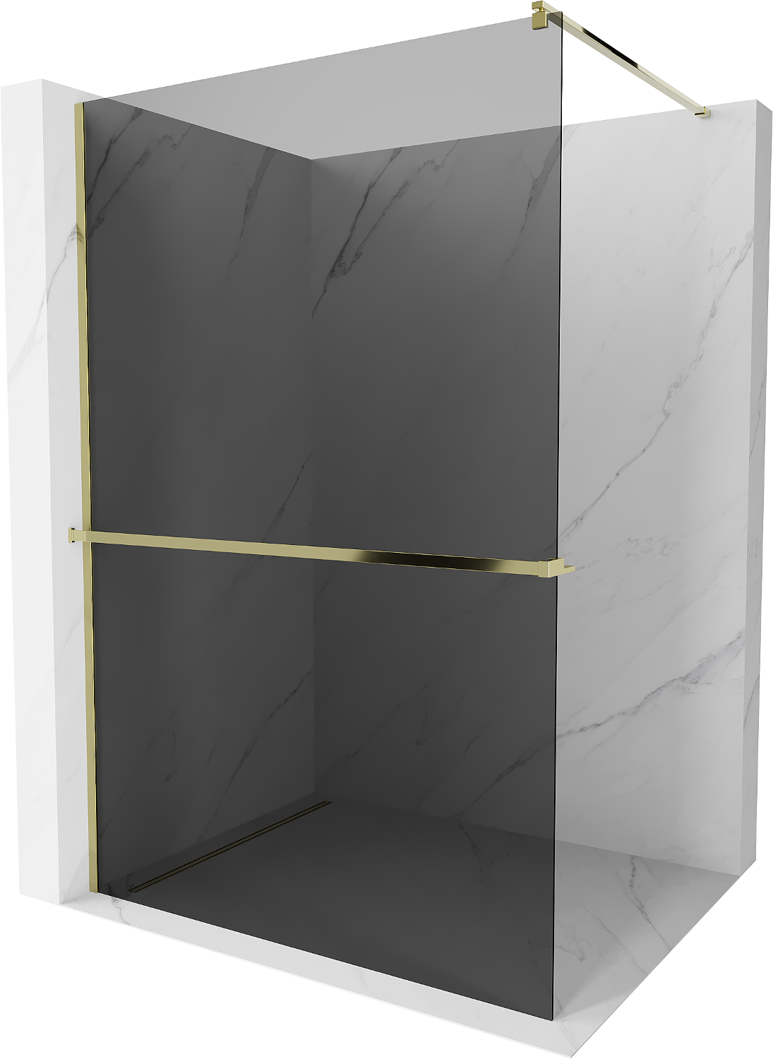 Mexen Kioto+ ścianka prysznicowa z półką Walk-in 110 x 200 cm, grafit, złota - 800-110-121-50-40
