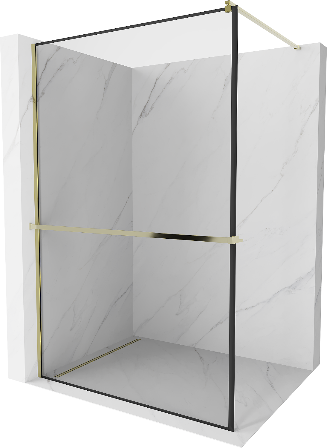 Mexen Kioto+ ścianka prysznicowa z półką Walk-in 120 x 200 cm, czarna ramka, złota - 800-120-121-50-70