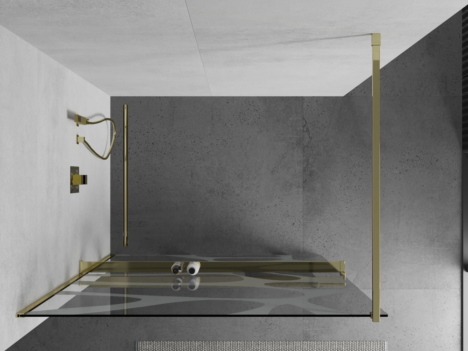 Mexen Kioto+ ścianka prysznicowa z półką Walk-in 100 x 200 cm, biała fala, złota - 800-100-121-50-97