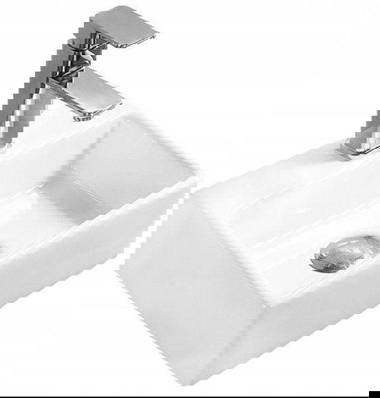 Umywalka posiada otwór, w którym możemy zamontować baterię. Pozwala to zaoszczędzić cenną przestrzeń w łazience oraz podkreślić jej estetykę. Rozwiązanie to umożliwia również łatwiejsze utrzymanie czystości wokół umywalki.