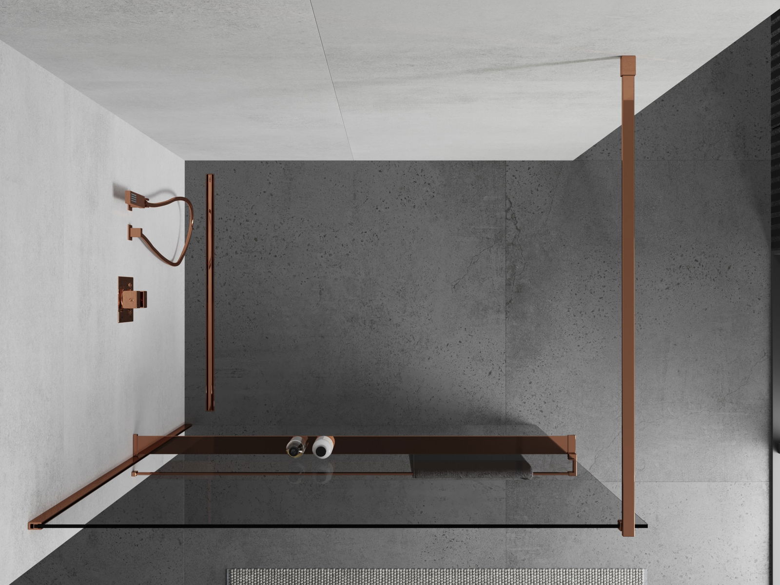 Mexen Kioto+ ścianka prysznicowa z półką Walk-in 140 x 200 cm, transparent, różowe złoto - 800-140-121-60-00