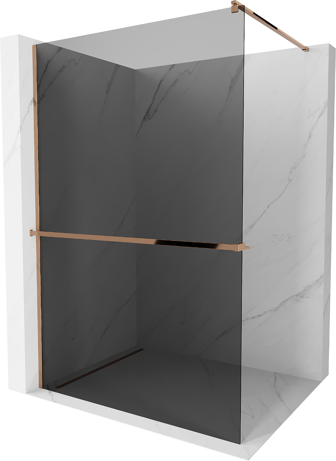 Mexen Kioto+ ścianka prysznicowa z półką Walk-in 90 x 200 cm, grafit, różowe złoto - 800-090-121-60-40