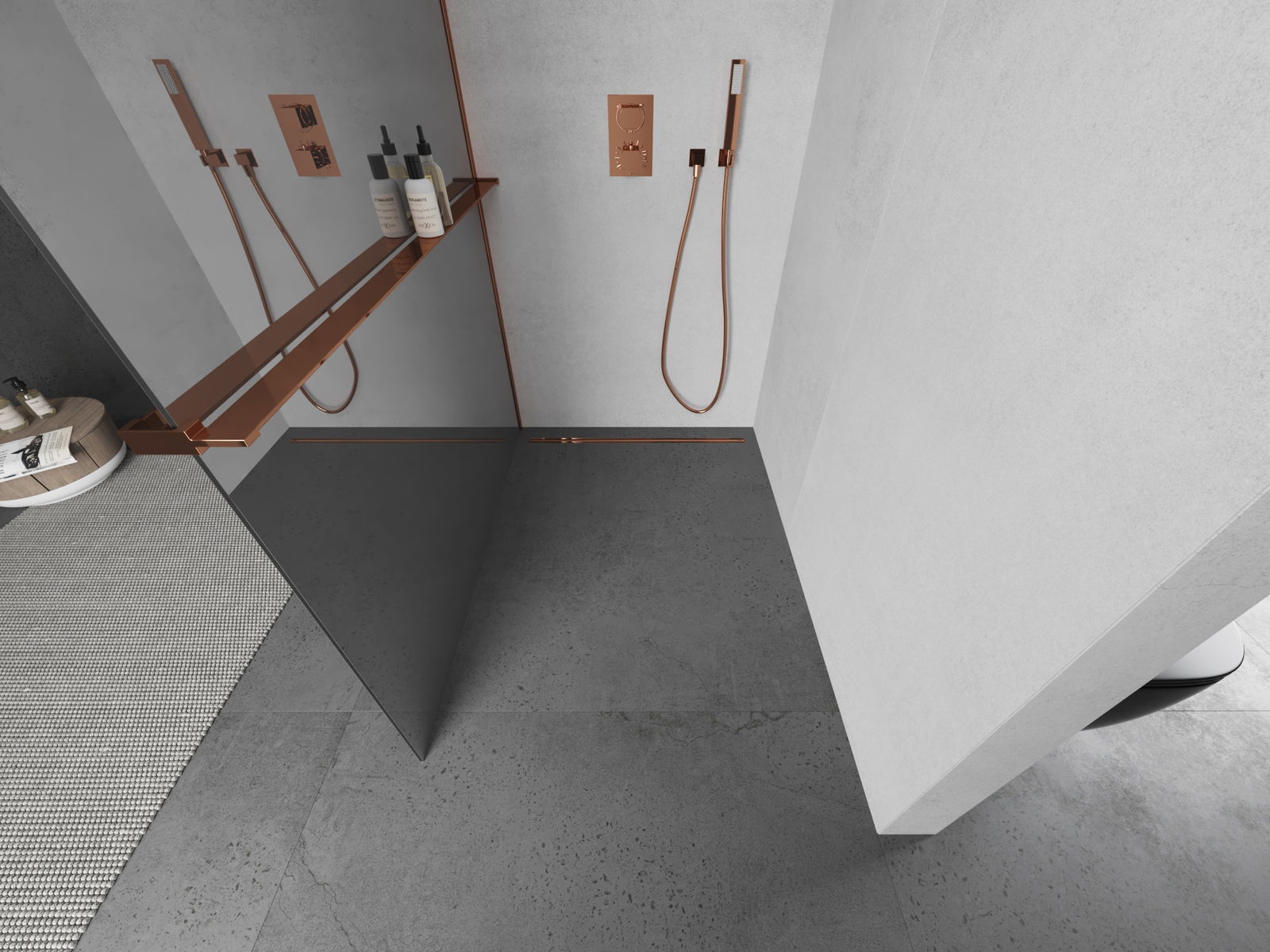 Mexen Kioto+ ścianka prysznicowa z półką Walk-in 100 x 200 cm, lustro, różowe złoto - 800-100-121-60-50