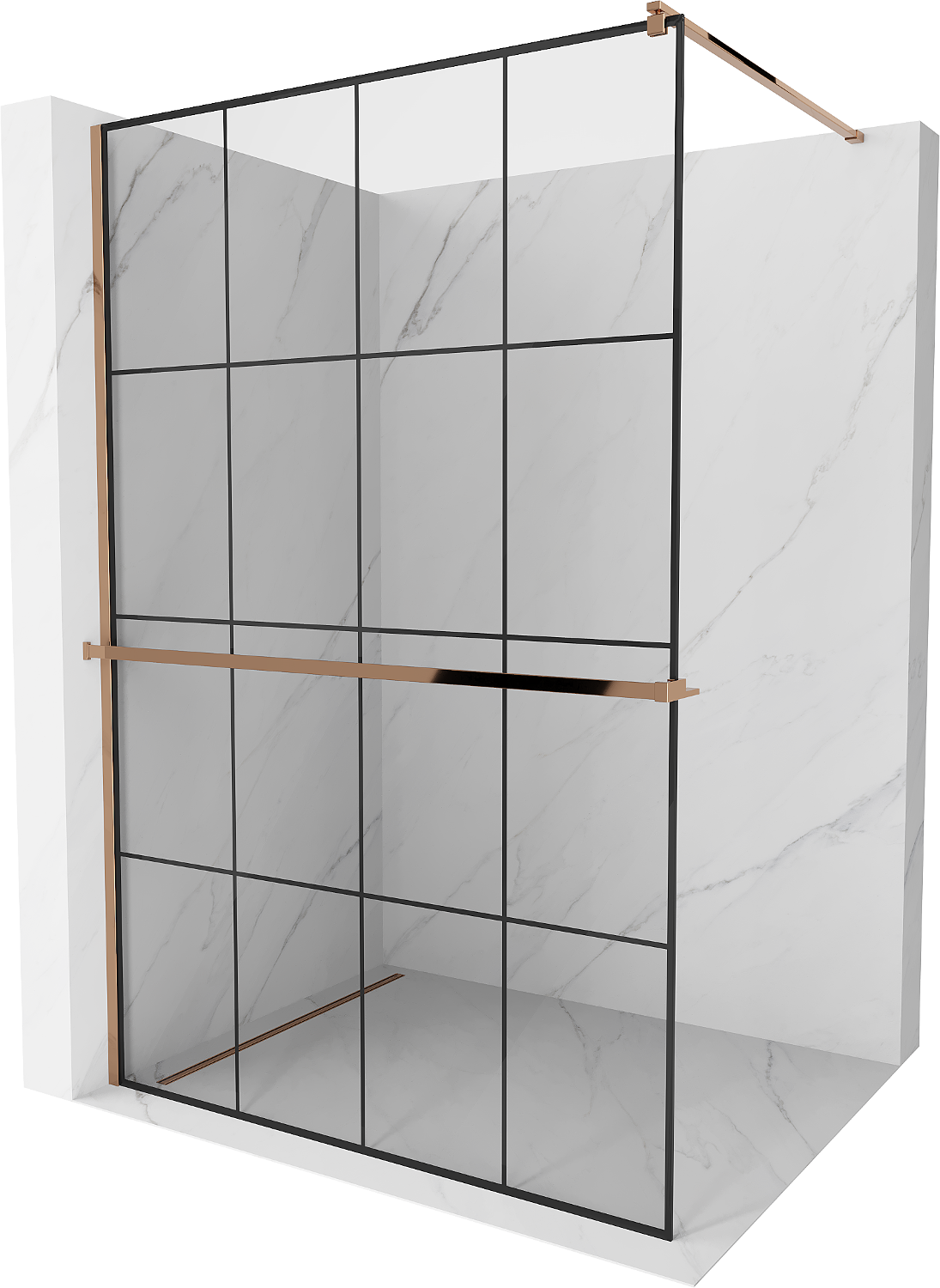Mexen Kioto+ ścianka prysznicowa z półką Walk-in 130 x 200 cm, czarna kratka, różowe złoto - 800-130-121-60-77